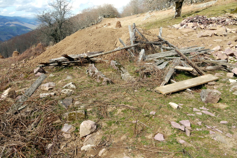 Cuando visité este monumento tuve la oportunidad de hablar con los jóvenes que estaban reconstruyendo la borda. Les mencioné el dolmen y me dijeron que justo el día anterior había pasado por allí un grupo de Aranzadi (deduje que se trataría de Hilharriak, Alfonso, Txintxurreta y compañia) que les avisó acerca de la existencia de los monumentos, que ellos desconocían hasta entonces (no estaban señalizados de ningún modo). Vamos, que ya están sobre aviso. De todos modos sería conveniente que fueran señalizados adecuadamente, ya que la proximidad de la borda atraerá a más visitantes que antes a la zona.