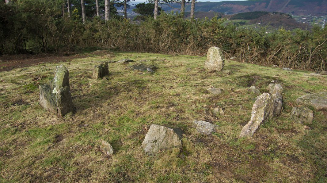 2.- Harrespila. Diametro 6 m.koa da I-H eta 5,50 m. E-M. Agerian dauden 15 lekukok osatzen dute, 0,60 eta 0,10 m. tarteko altuerako 9 azpimarragarriak direlarik.