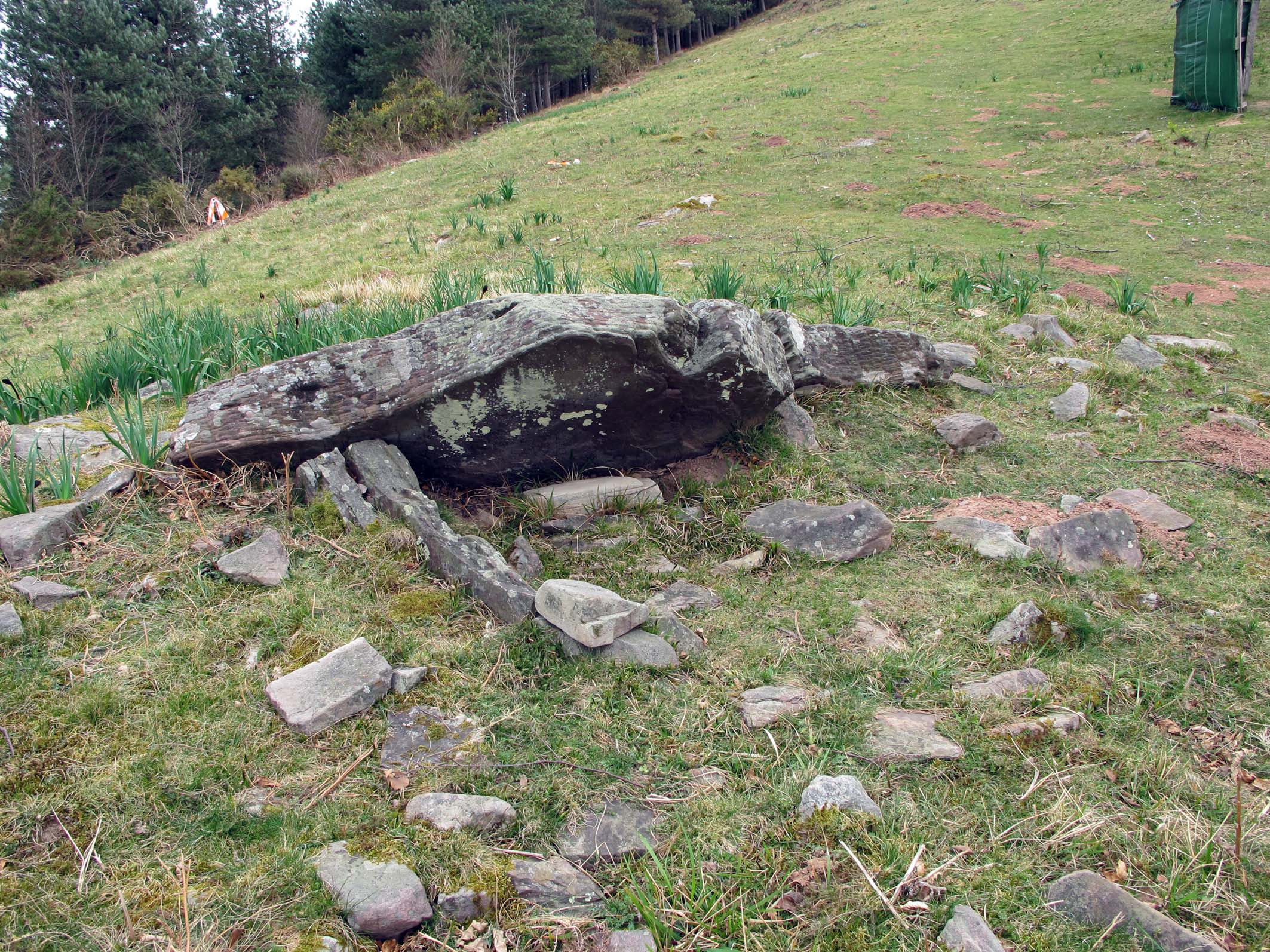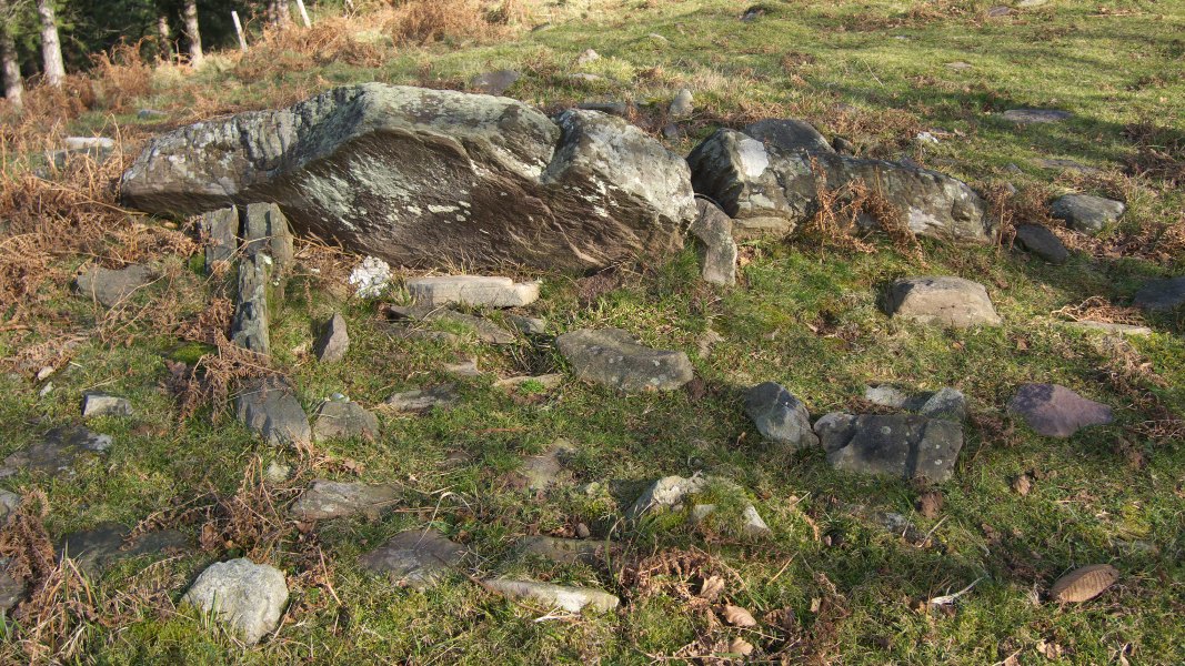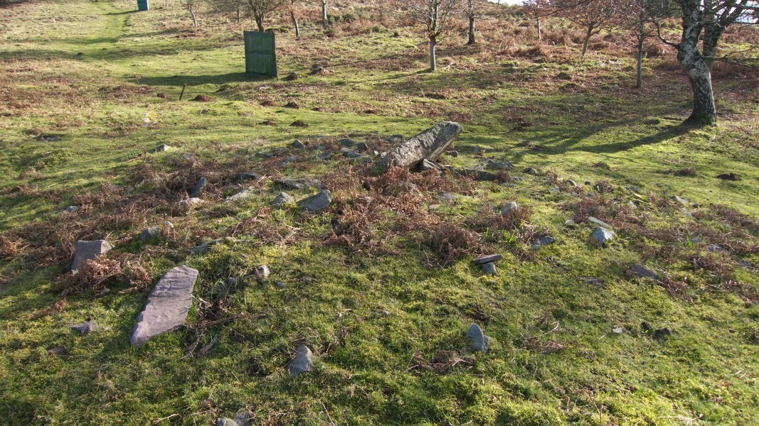 Trikuharria. Tumulua oso jeitsia, ia desagertua. Ganbara eskuadran dauden bi harlosak eratzen dute, bata, haundiena (ziur asko albokoa), barrukaldera okertua. Norabidea 135ºtakoa da. Bertako hareharriak.