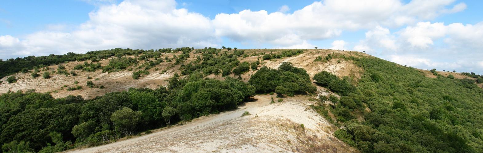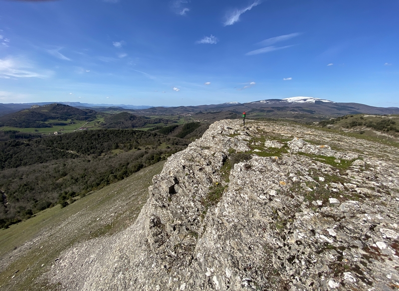 entre alerces,300metros despuesde cruzar el riachuelo,en una bifur cacion,vamos ala derecha, con hitos,direccionsuroeste,y vamos amedia ladera, ala derecha dejamos HARRIKURUTZ,SEGUIMOS POR LAPISTA PRINCIPAL,llegando a una meseta vallada,min 45nos alejamos de la valla,girando ala izquierda,direccion sur yvemos anuestra izquierda aunos 30 metros una pequeña txabola, OJO,,,aqui para acortar,abandonamos lapista principal,ycogemos entre dos gruesas hayas, marcadas enrojo,una pequeña senda direccion oeste,cruzamos una pequeña charca,yascendemos oeste,hasta salir ala pista principal,junto al monolito m.p.208seguimos ascendiendo por la pista principal,que va por la izquierda,cruzamos junto ala pista 2 pequeños humedales,y se llega al monolito m.p.198,aqui acaba el bosque de hayasy aqui se confluye con la pista, que viene de etxaguen,la pista se transforma en estrecha senda entre helechos,.en los tramos finales, ala derecha del camino, existen numerosas trincheras de llas guerras carlistas y civil, yla leyenda del tesoro del oketa.llegamos ala cima 1h40min, ritmo comodo. oketa 1031m. buzon c.d.gasteiz1987. vertice geodesico,nacimiento, monolito2,5m. los datos g.p.s. del catalogo, creo NO estan correctos. se puede volver por el mismo camino, pero conociendo la zona, se puede bajar, por estrecha senda direccion canteras de muruay con direccion noroeste, llegar ala mesta alambrada y ala txabola de pastores. este camino desde ubide es recomendable en dias despejados oexige conocer la zona.