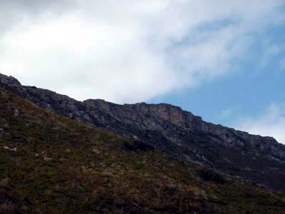 Guk ezkerretara dagoen pista bat hartuko dugu. Ez dago markatuta baina ez dago galbiderik: pista horrek haitz artean ikusten den pasarte batetara garamatza. Pasartea igarotakoan senda batek zig-zag-ean gailur ingururaino eramango gaitu (1h 30\'). Gailurra bera ezkerretara gelditzen da baina eskumatara gelditzen den tontorreraino bueltatxo bat egiteak merezi du. Gailurreria osoa harresiz eta koba artifizialez beterik dago.