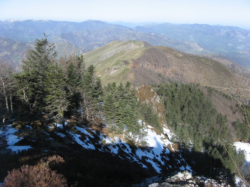 Elur gainean, pioleta bat ontsa erabiltzen lehen maldan. Bainan azken partea oso nahasia da eta aitzinatze gogorra da arbolak moztu erdian...