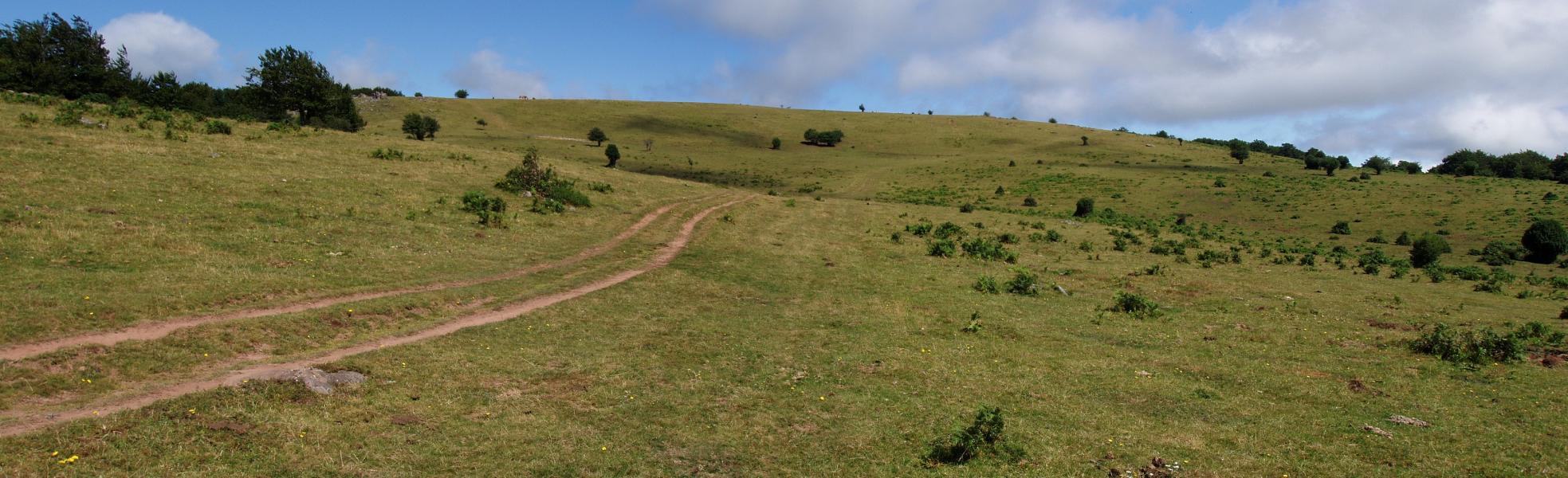 2022ko uztailaren 31n izan nintzen bertan, Korona eta Xuritzetik pasa ondoren, eta ikustekoa zen bere HEko hegiko larre eremu zabalaren egoera, erabat gorrituta. Putzuak agortuta eta haziendak marruka, bazka eske, bi hankeko ibiltariari begira. Argazki gehiago ere atera nituen, baina ez ditut igo, larreak bere kolorea berreskuratzen duenean hobeto emango duelakoan.