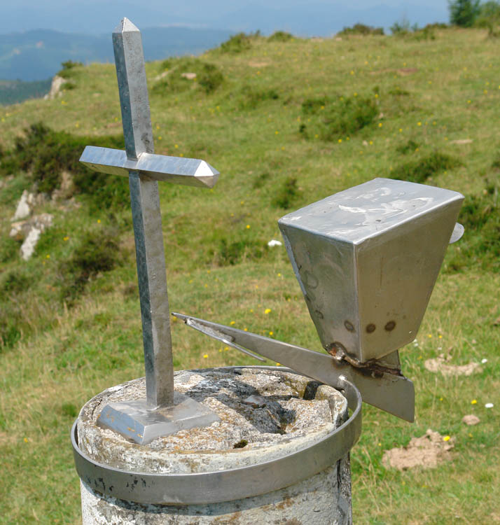 Se añade al anterior nombre de este monte la denominación que también recibe a causa de hallarse en la cima el mojón donde se juntan los términos de Azkoitia, Azpeitia y Zumarraga.</cite>"