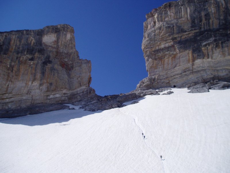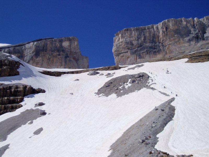 ondo iritsi ginen baina handik lainoa ikusten zen.Ordu erdi igaro ondoren gora jarraitzea erabaki genuen glaziarretik ez elurra ez zegoelako kondizio onetan .Bretxa Errolan pasa ondoren erabaki genuen buelta ematea.Hurrengo batean izan beharko du.