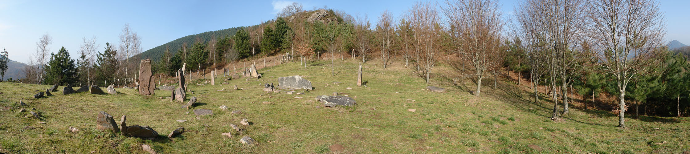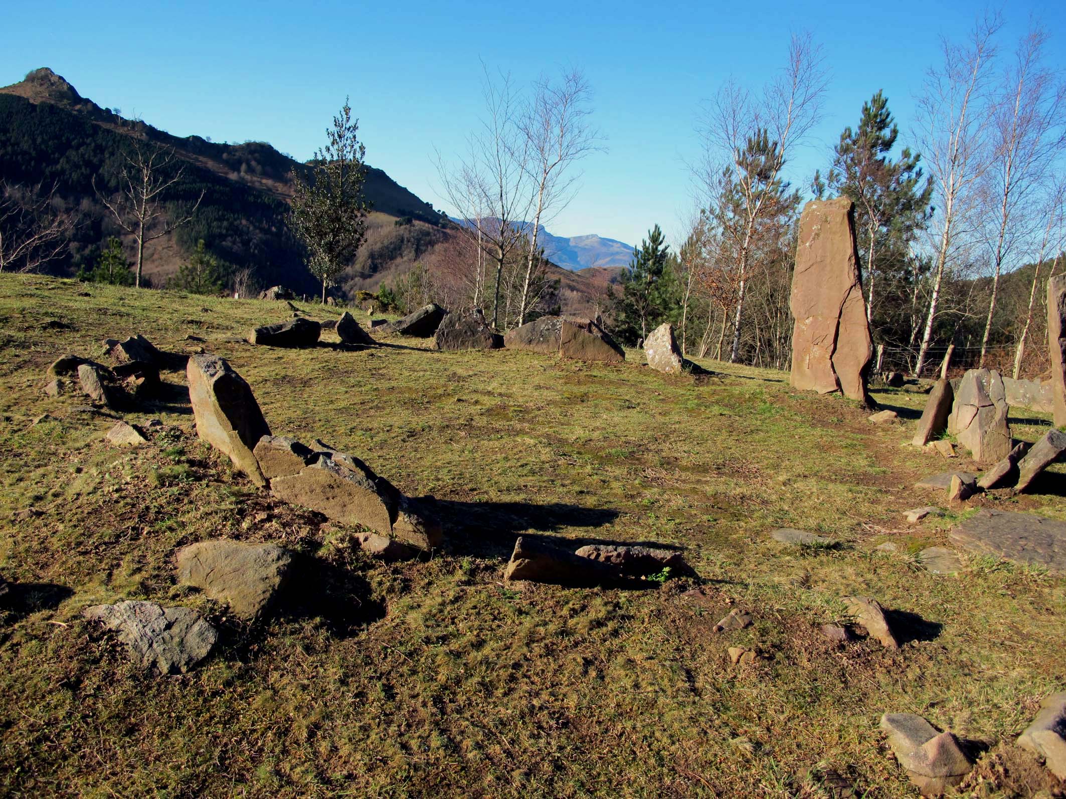 3.- Harrespila. 4,80 m. diametrokoa I-H eta 4,30 m. EM. 18 lekukok osatzen dute, 1,45 eta 1,40 m.tako bi azpi-marragarriak direlarik. Bere barnean, iparraldeko sektorea-rekin tangente, egitura anular bat du, 1,80x1,10 m.takoa, neurri txikiagoko lekukoz osaturik eraztun-egitura bat du.
