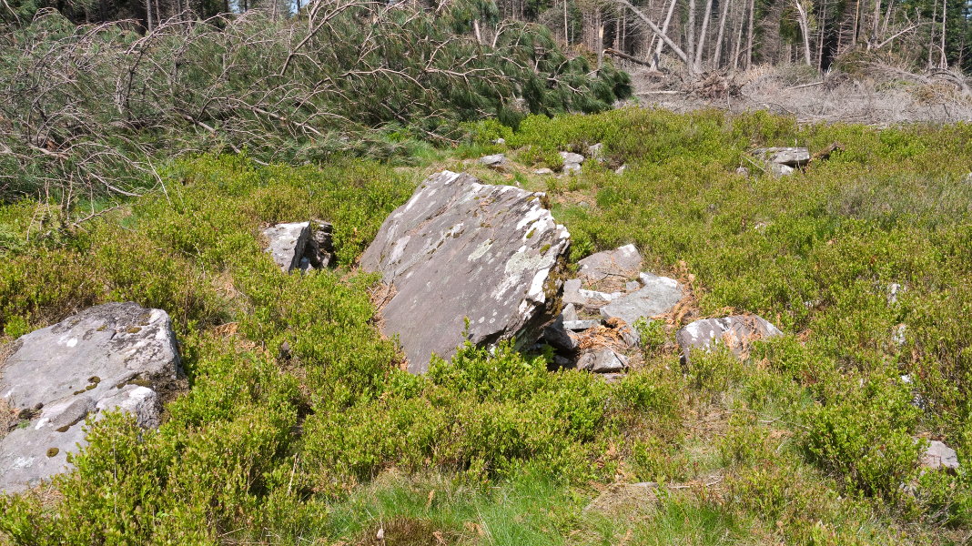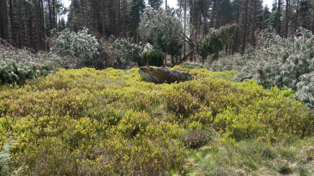 haizeak inguruko basoa txikitu du eta hainbat pinu tumuluaren gainean daude etzanda. kokapena zehaztu dut GPSaz bertan jasotakoarekin.