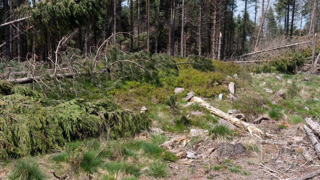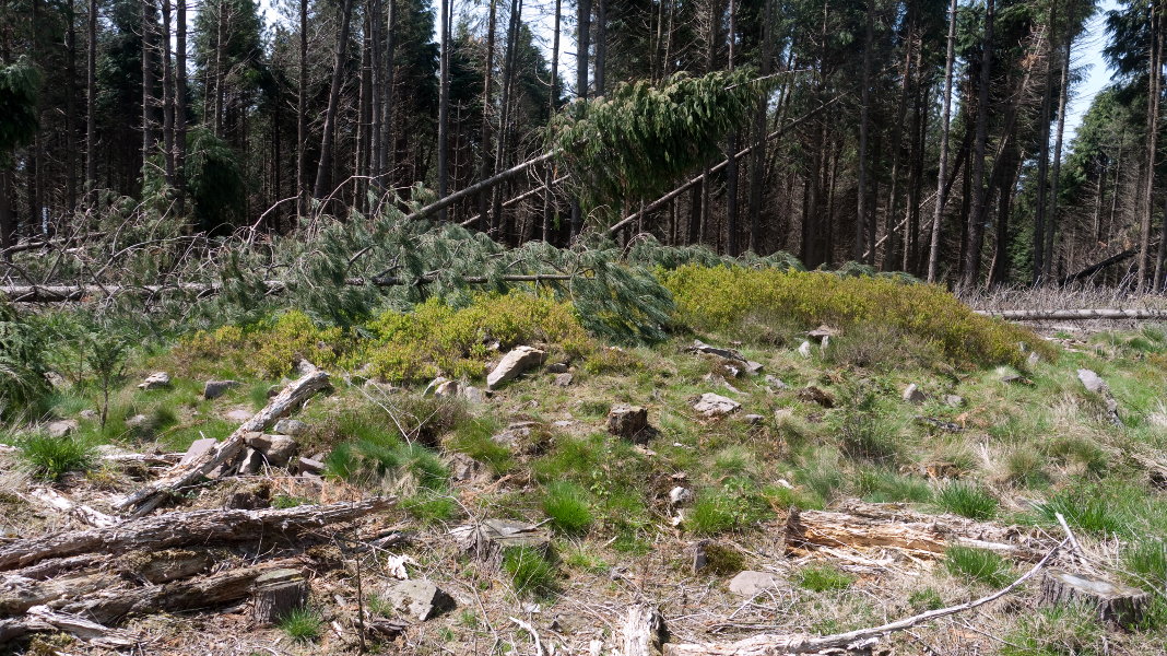Aldameneko trikuharriak bezala, hainbat pinu enbor ditu gainean etzanda, azkeneko haizeteak basoan eragindako txikizioaren ondorioz. Kokapena zehaztu dut, GPSaz bertan jasotakoarekin.