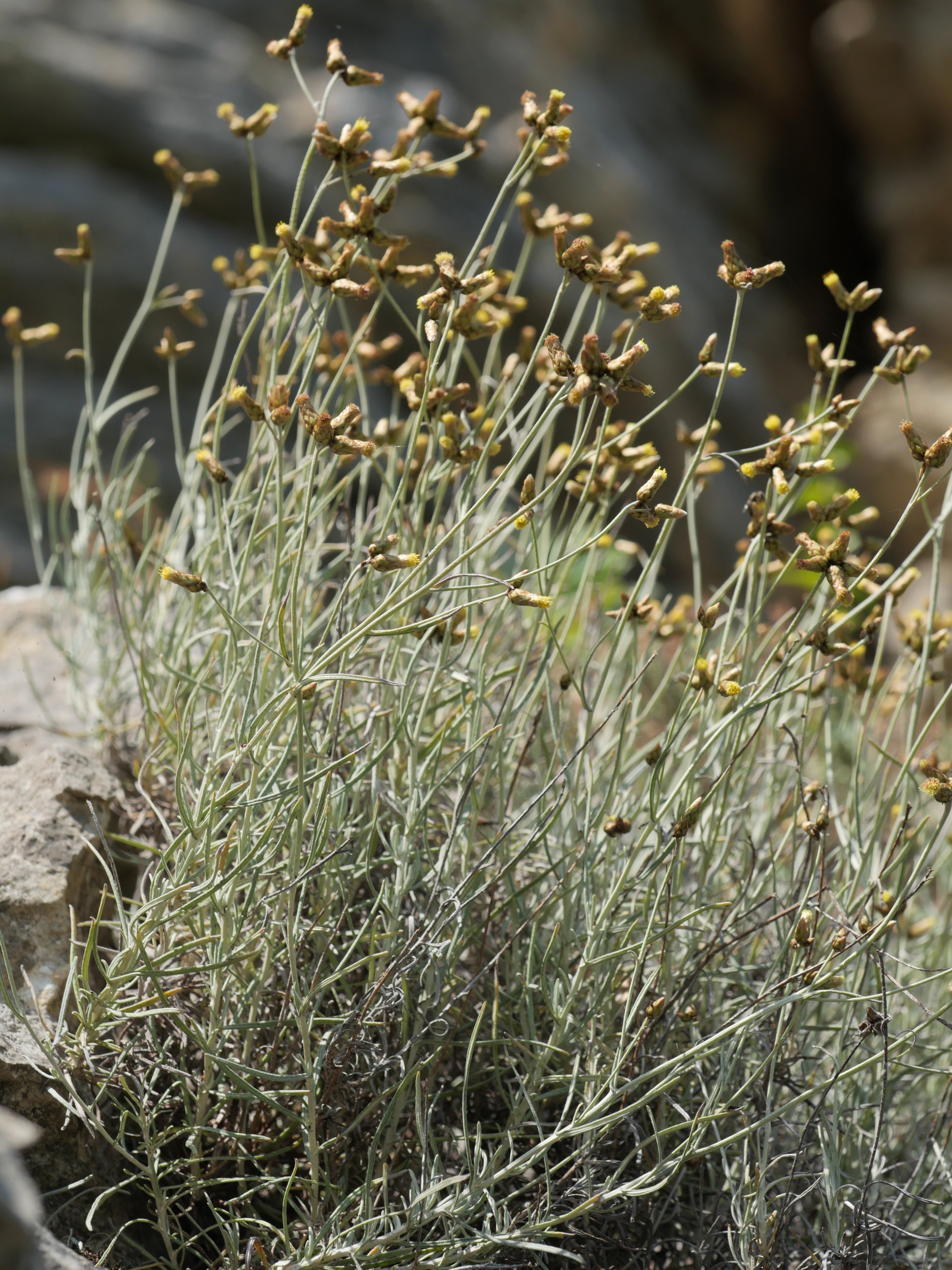 Kapituluak banaka daude; inbolukruaren kanpoaldeko brakteak arrautzaitxurakoak dira, eta tartekoak eta barrukoak lineal/lantzeolatuak (11)