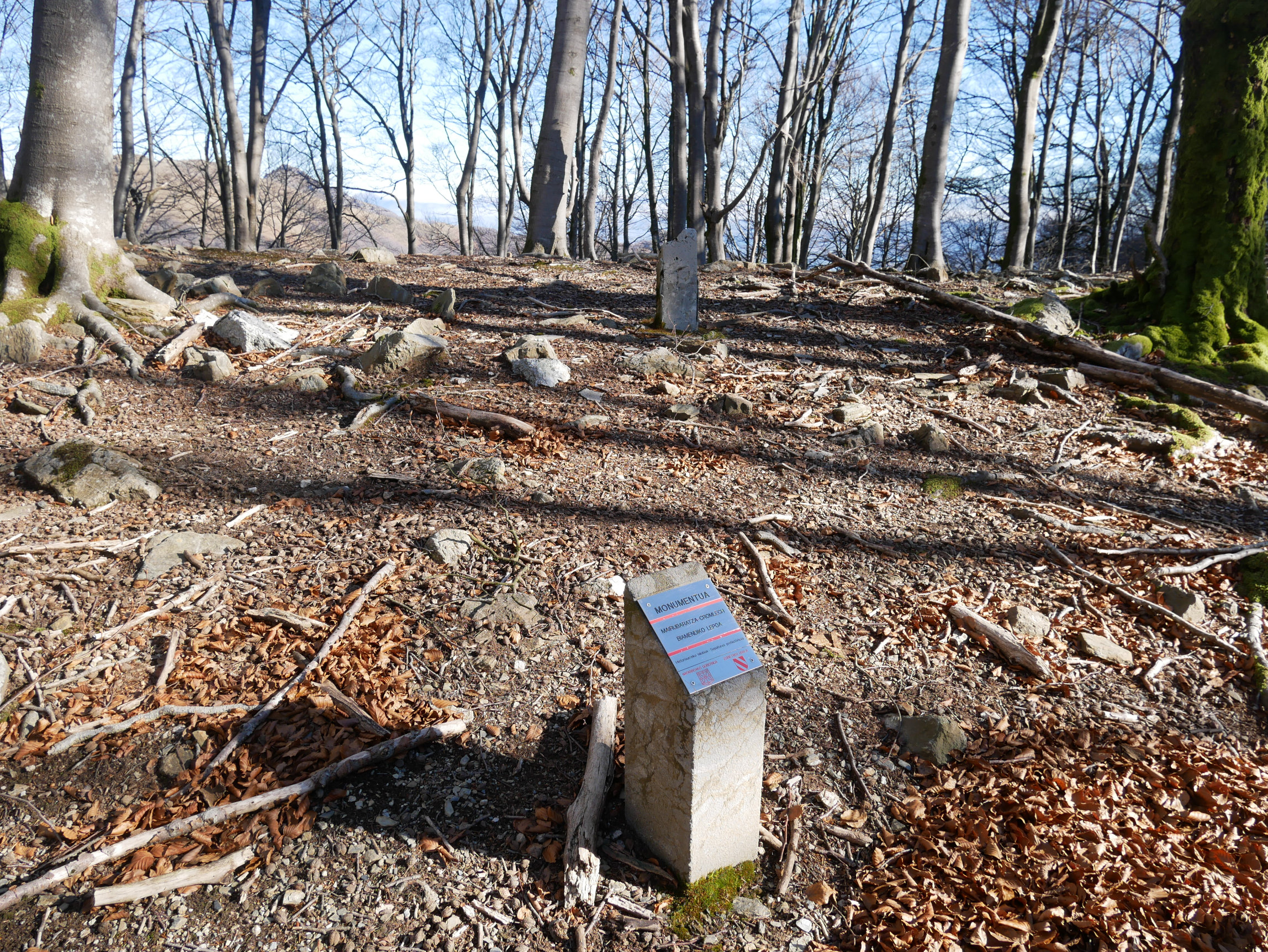 y lajas de pizarra, de los que destacan 11 hincados en el terreno, con alturas entre 0.18 m. y 0.10 m., el resto a ras de suelo o caídos. Arco septentrional deformado por haber crecido una haya en su centro. En el interior del sector suroccidental se ubican dos bloques de cuarcita.