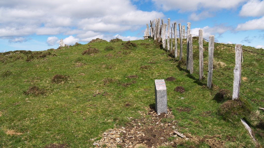 1.– Cromlech. 4.60 m. de diámetro N.-S y E.-W., formado por numerosos bloques, revueltos y desplazados de su lugar por la colocación de postes de alambrada y el mojón de cota geodésica que se ubica en el lugar. Materiales, piza-rras del terreno.