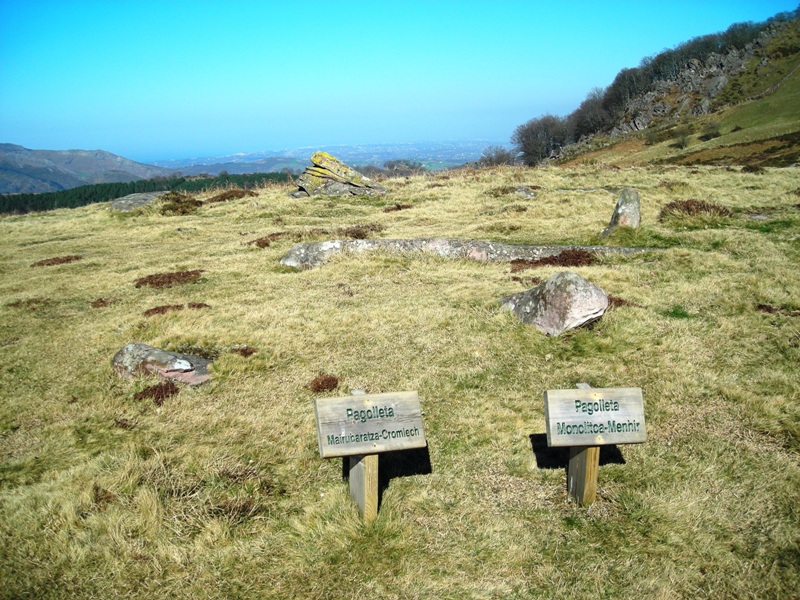 PAGOLLETA zutarria (0 m.ra) · BAGOBILLETA tumulua (59 m.ra) · PAGOLLETA IPAR harrespila (206 m.ra) · IRAZAKO (Bagoiltako lepoa) trikuharria (341 m.ra) · ARRIKOLOTA zutarria (452 m.ra) · ARRIKOLOTA harrespila (542 m.ra) · Olako borda karobia (566 m.ra) · Zentinela mendia (649 m.ra) · ALTSOROI 1 hego zutarria (792 m.ra) · ALTSOROI harrespila (798 m.ra) · ALTSOROI 2 ipar zutarria (814 m.ra) · IRAZAKO LEPOA tumulua (858 m.ra) · MAIKO GAÑA trikuharria (923 m.ra) · ORIZKI GAÑA trikuharria (933 m.ra) · ORIZKI tumulua (935 m.ra) · ORIZKI zutarria (948 m.ra) · ORIZKI harrespila (985 m.ra) ·