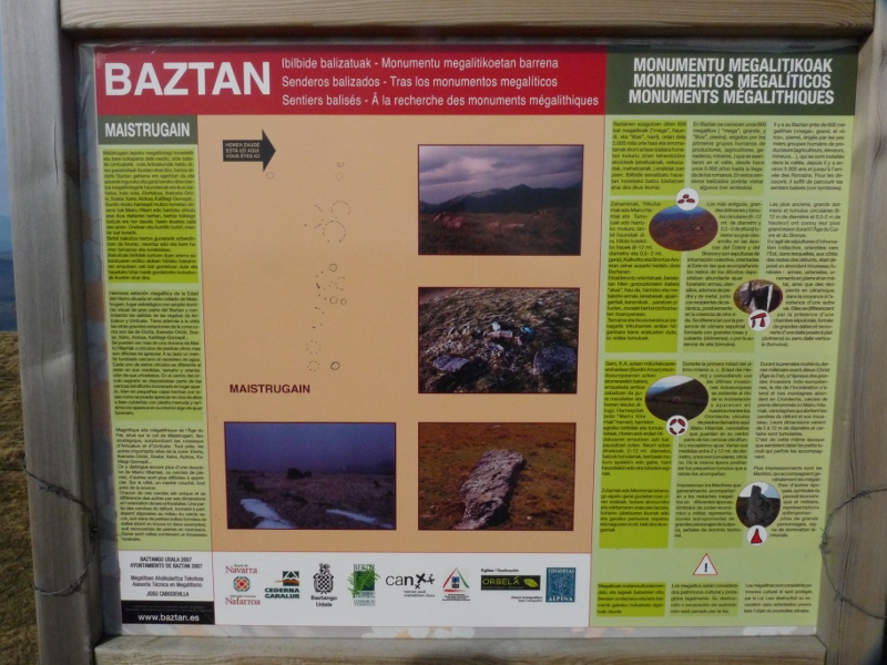 Kaixo, aurreko egunean Gorramendi inguruan ibili ginen, eta hango monumentuak bilatu. Ez genituen ordea Maistrugain eki eta mendebalderen arrastorik topatu. Maistrugaingo estazioko kartelean haien arrastorik ere ez zegoen. Maistrugain estazioko orrialdean bertan ateratako argazkiak jarri ditut. Ez dakit horietakoren bat Maistrugain eki edo mendebalde ote den. Hala balitz, erran eta bere tokian jarriko dut. Ongi izan!
