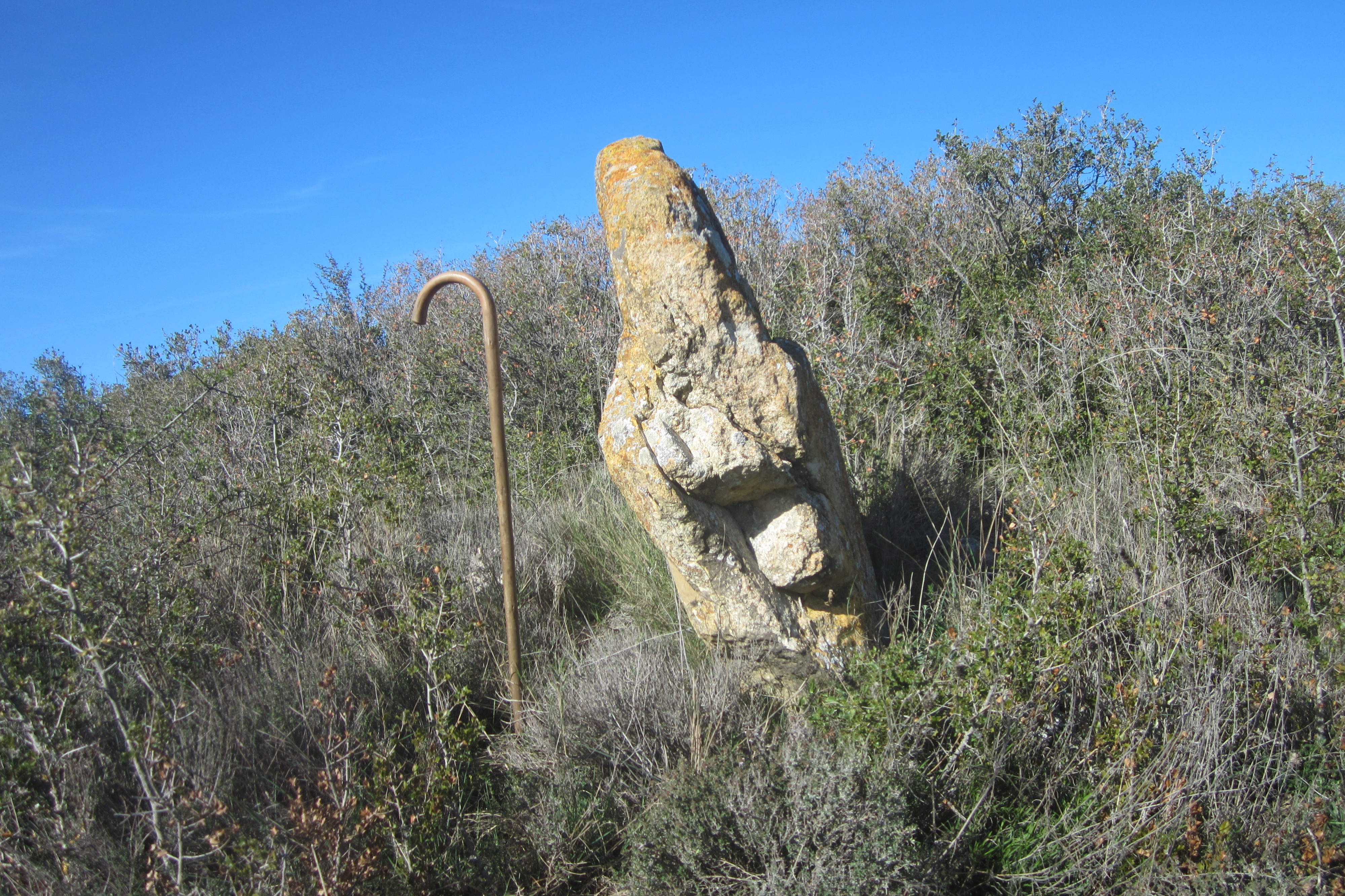 El Monolito se encuentra en un cerro que domina los campos de cultivo.