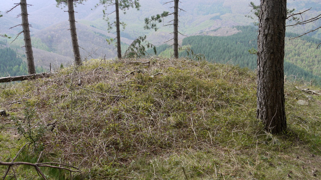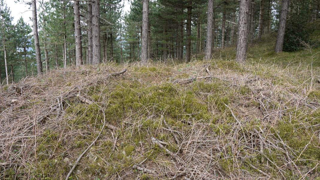 Kokapena zehaztu dut GPSaz bertan jasotakoarekin. Tumulua eta erdigunea nahiko zikin daude, pinu adar ustelekin estalita neurri batean.