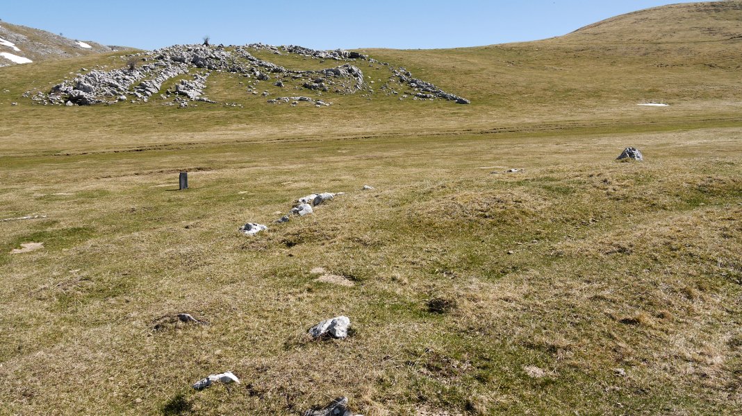 Harrespil tumularra 12 m. diametrokoa eta 0,30 m.tako altuerakoa Iparraldean eta 0,40 m. Ekialdean (gainontzeko sektoreak lurzoruaren mailan daude). Harrespilak 25 lekuko, harlosak eta harkoskoak, ditu agerian, HEan dagoena azpimarragarria delarik, 0,75x0,45x0,30 m.takoa eta piska bat barnekaldera okertua. Bertako kareharriak.