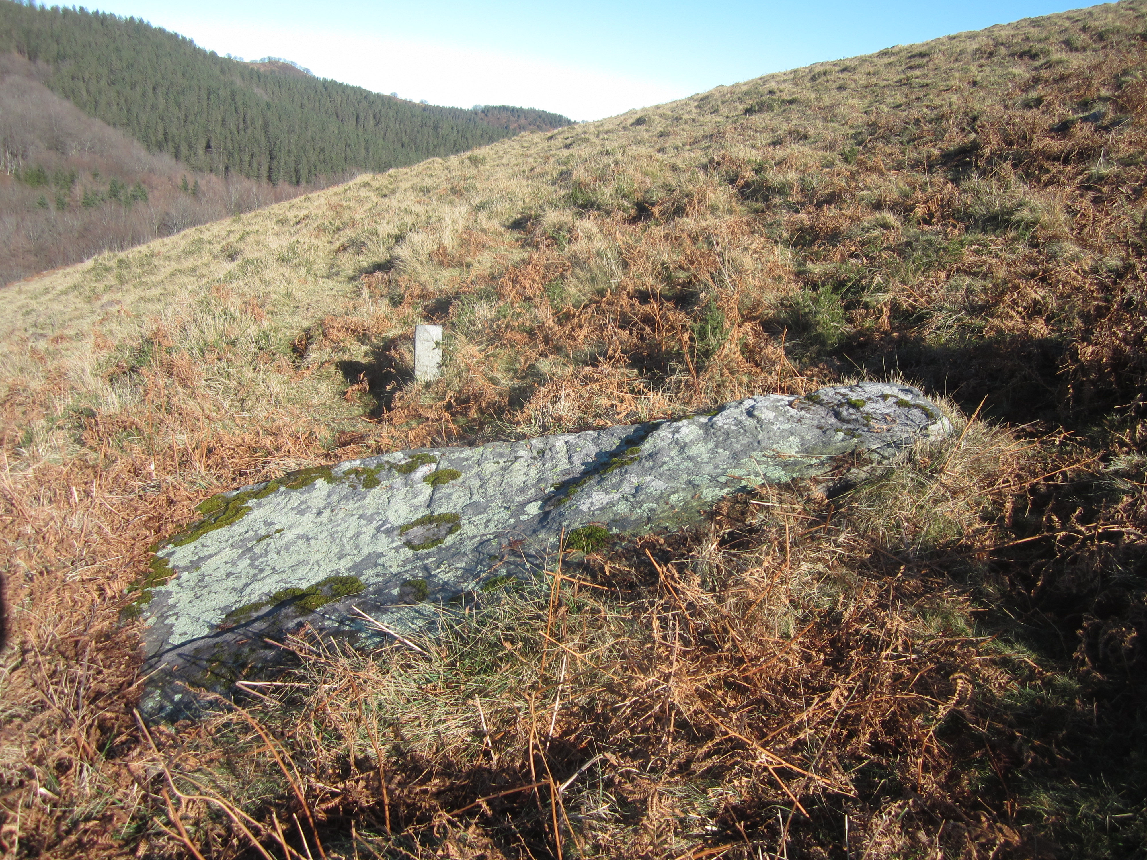 Ez nuen asko bilatu egia esan, ze nahiko leku garbia zen eta ez nuen ikusi ez harria eta ez plaka, eta okerren bat izango zela pentsatu nuen, ze inguruko gainontzeko megalitoak oso zuzen kokatuta zeuden. Gogoan dut bazela inguruan zenbait harri haundi, baina plakarik ez nuen ikusi. Begiratuko dut hobeto hurrengoan!