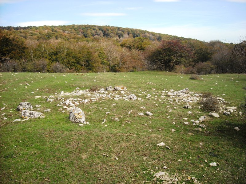 Círculo de piedras formado por seis piedras que delimitan un recinto ligeramente ovalado, y con una piedra hincada situada casi en el centro de este óvalo. Pequeña elevación en la parte central. Algunas piedras se han desplazado de su posición original y otras aparecen claramente calzadas.