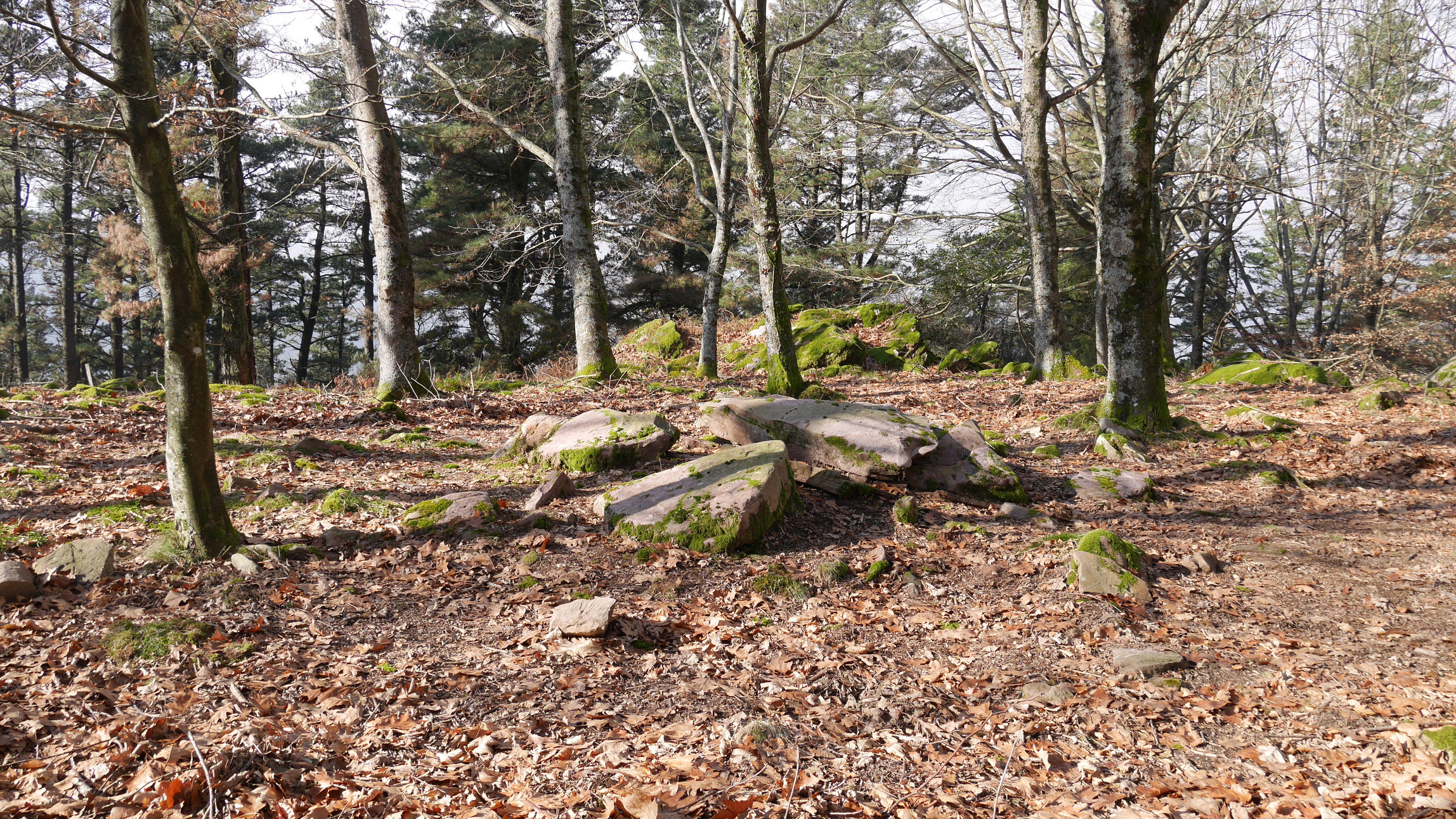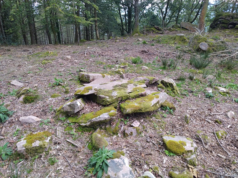 Dólmen de 7 m. de diámetro y 8 losas principales tumbadas.Hay una losa de 2 m. fracturada por el peso de la tapa.
