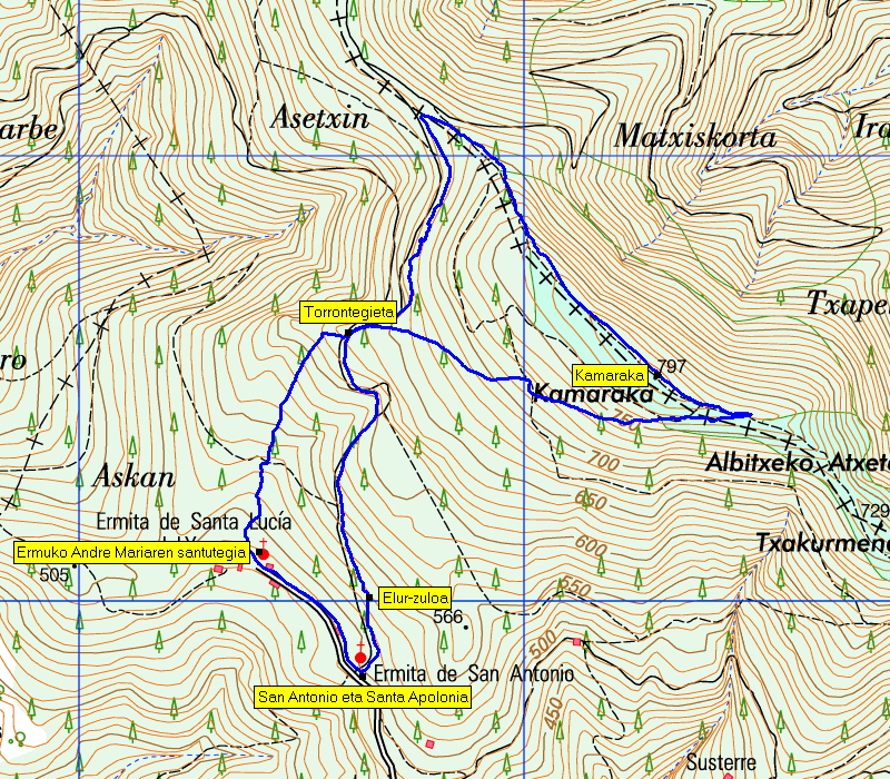 Ermuko Andre Mariaren santutegia - San Antonio eta Santa Apolonia ermita - Torrontegieta - Albitzukoatxeta - Kamaraka - Torrontegieta - Ermuko Andre Mariaren santutegia