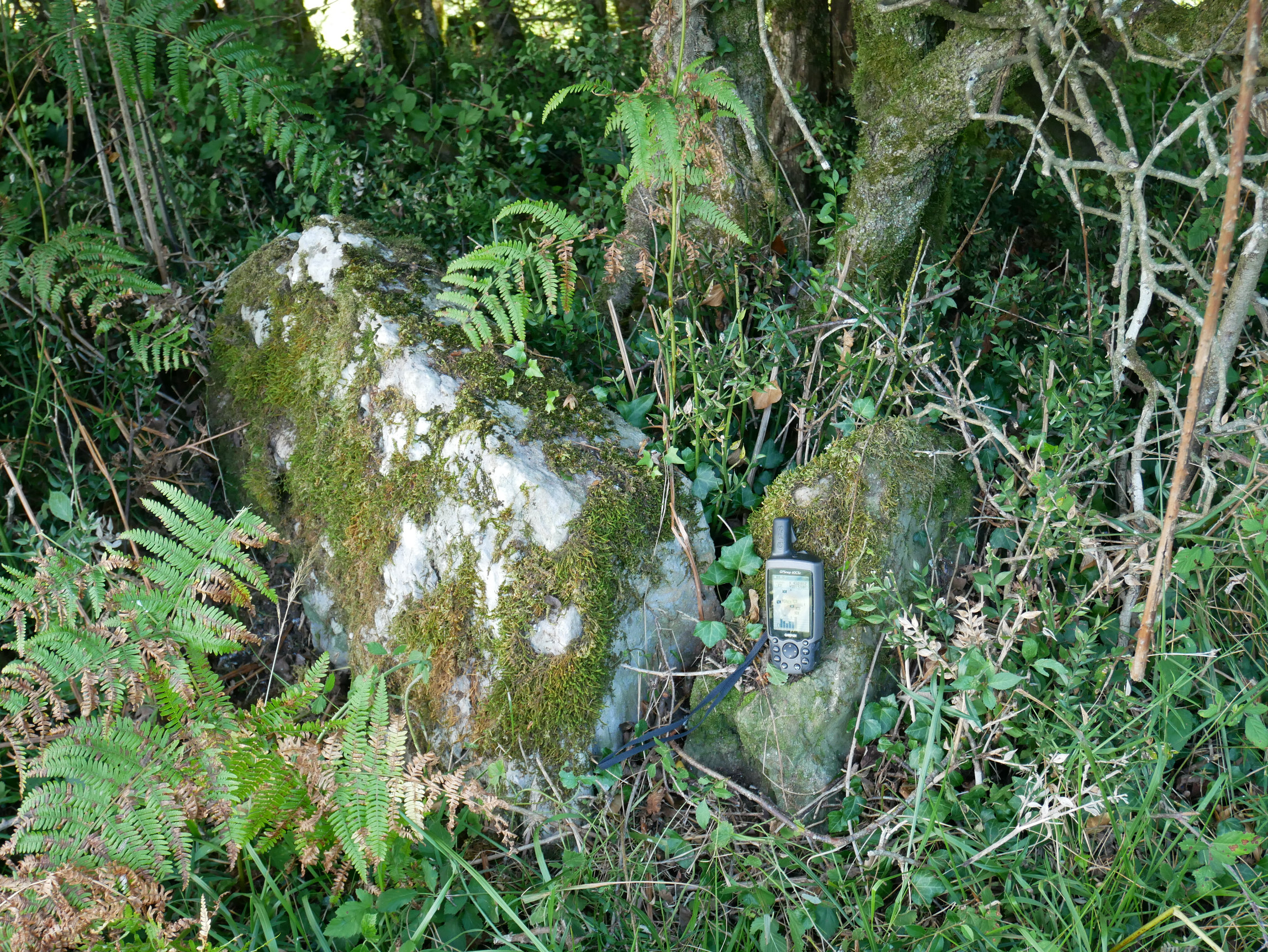 Lekua ez zait horren aproposa iruditu, baina ez dakit zer bestetarako egon daitezkeen han harri horiek. Ez du ematen mugarriak direnik (ez da gaur egun mugarik bertan).