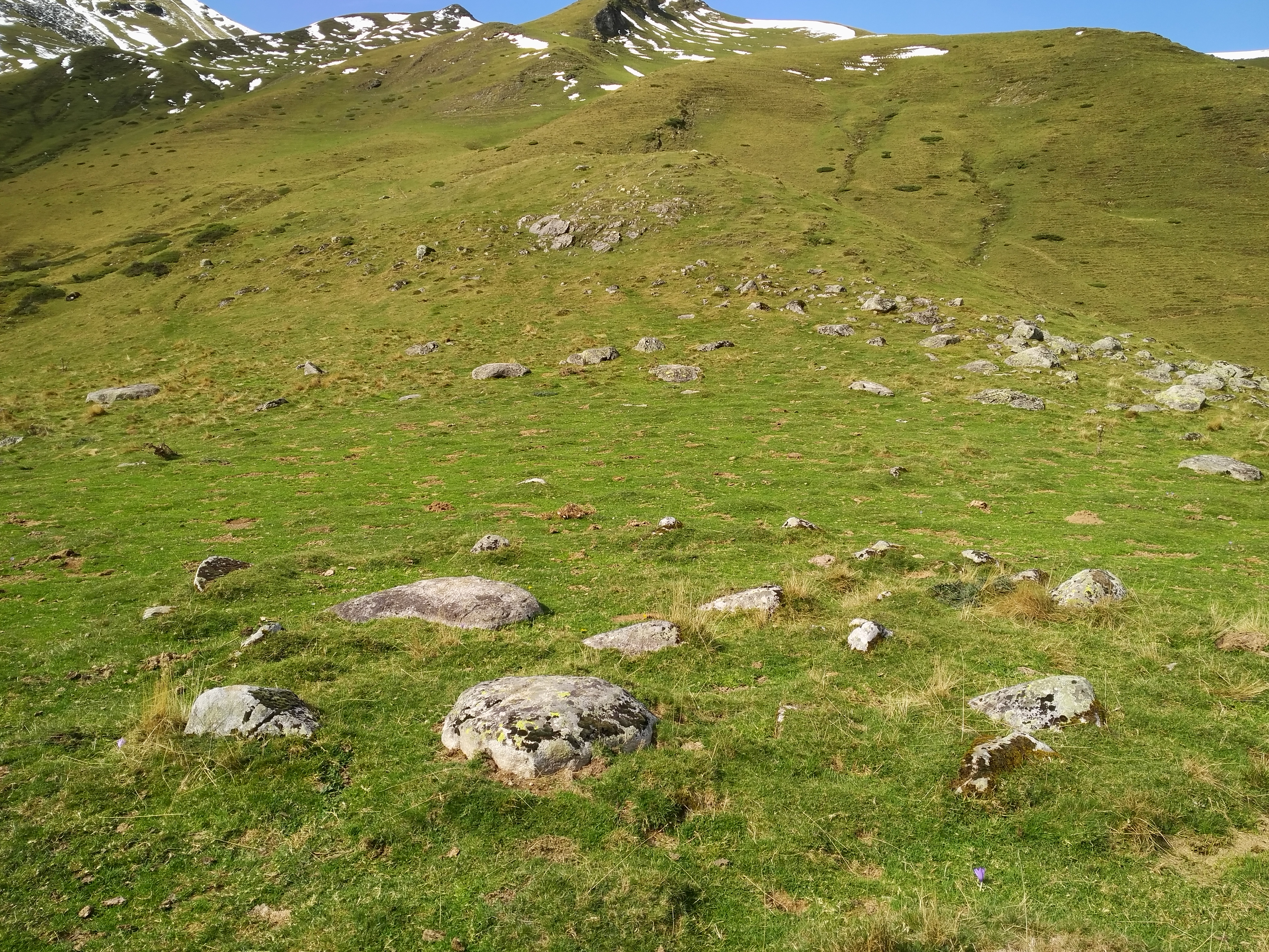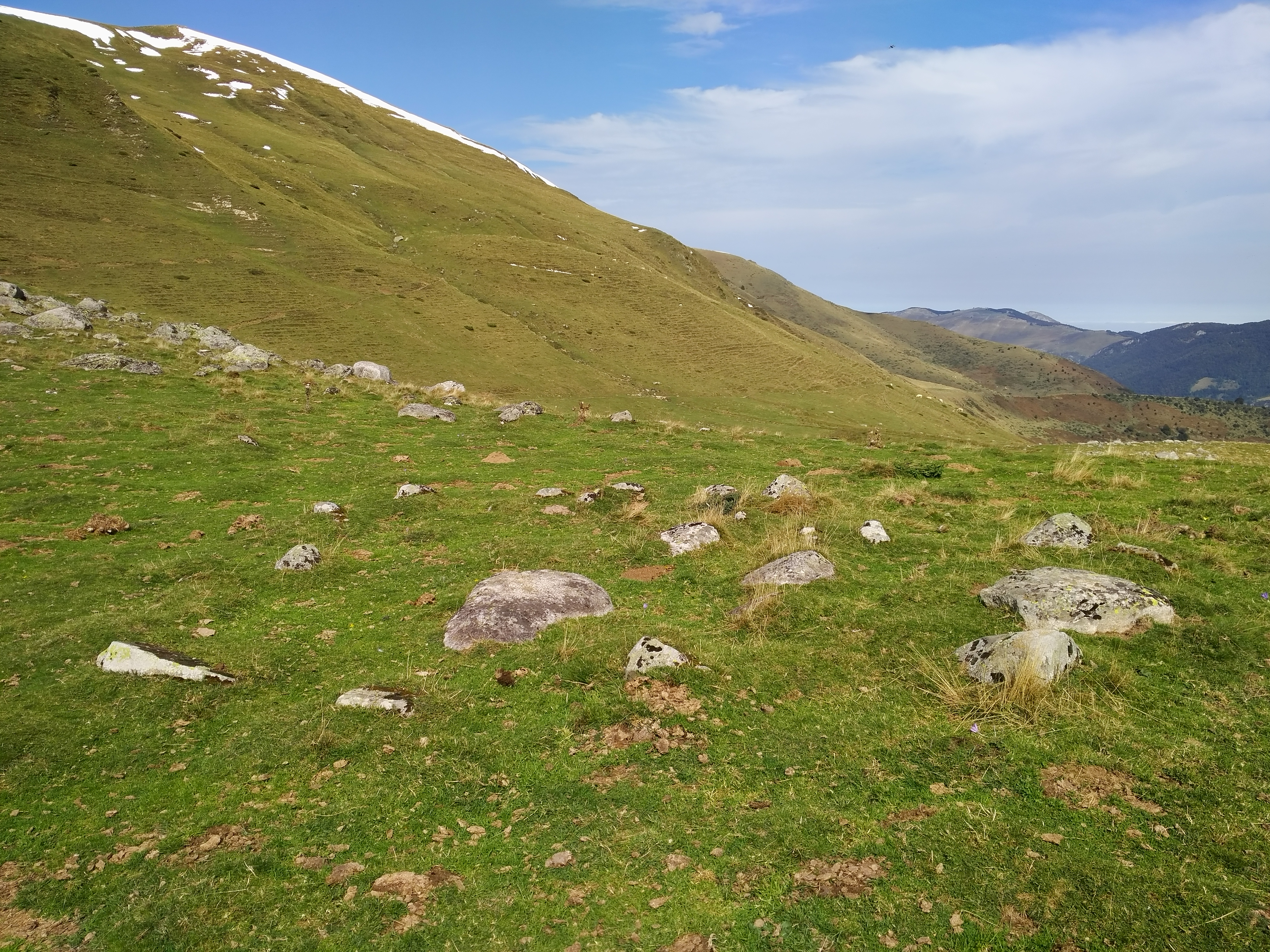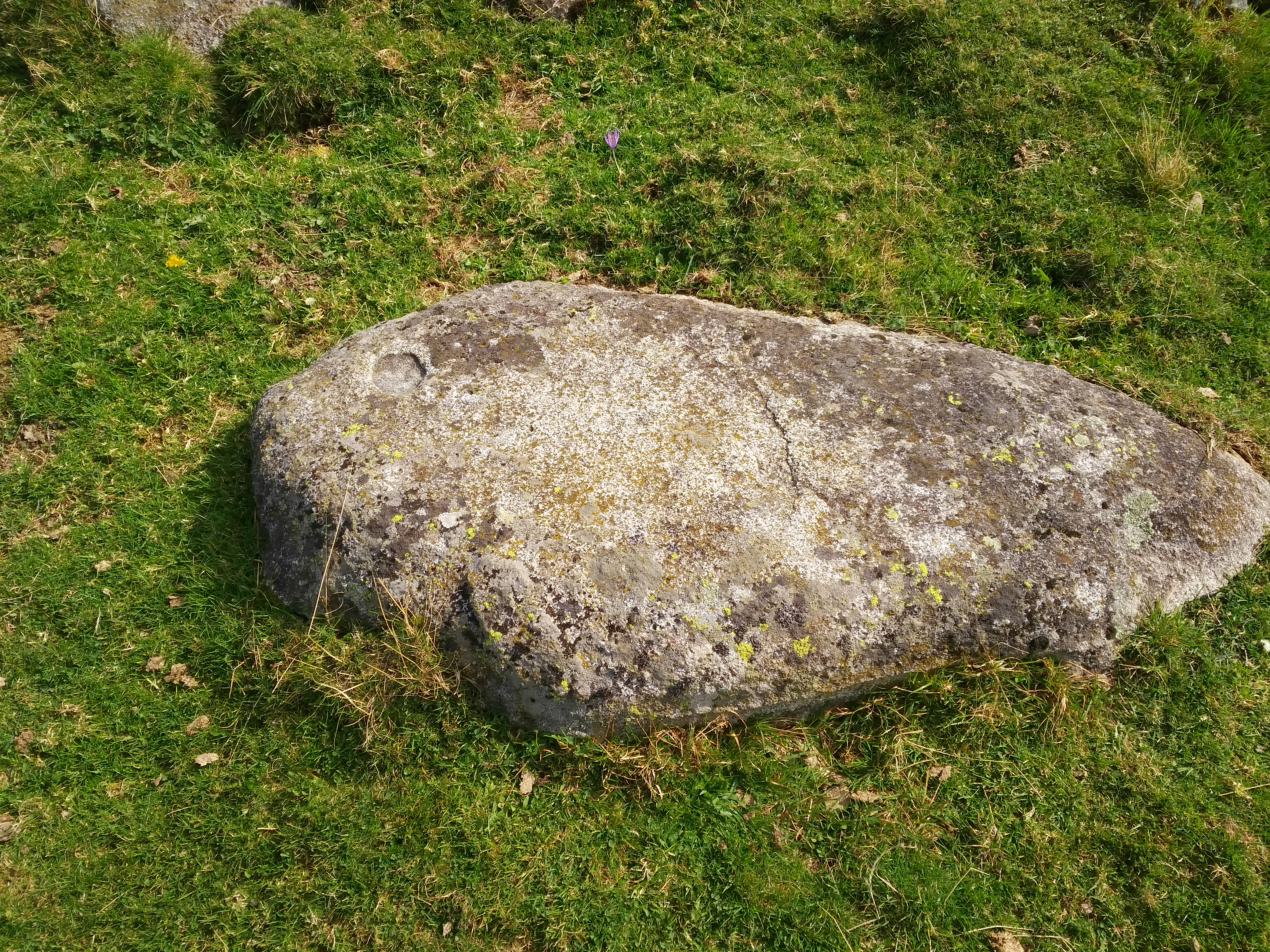 Zirkuluaren barruan zenbait harri ageri dira, haietako bat 1,60 x 0,80 x 0,20 metrotako harlauza, estela antza duena eta kazoleta bat erakusten duena.