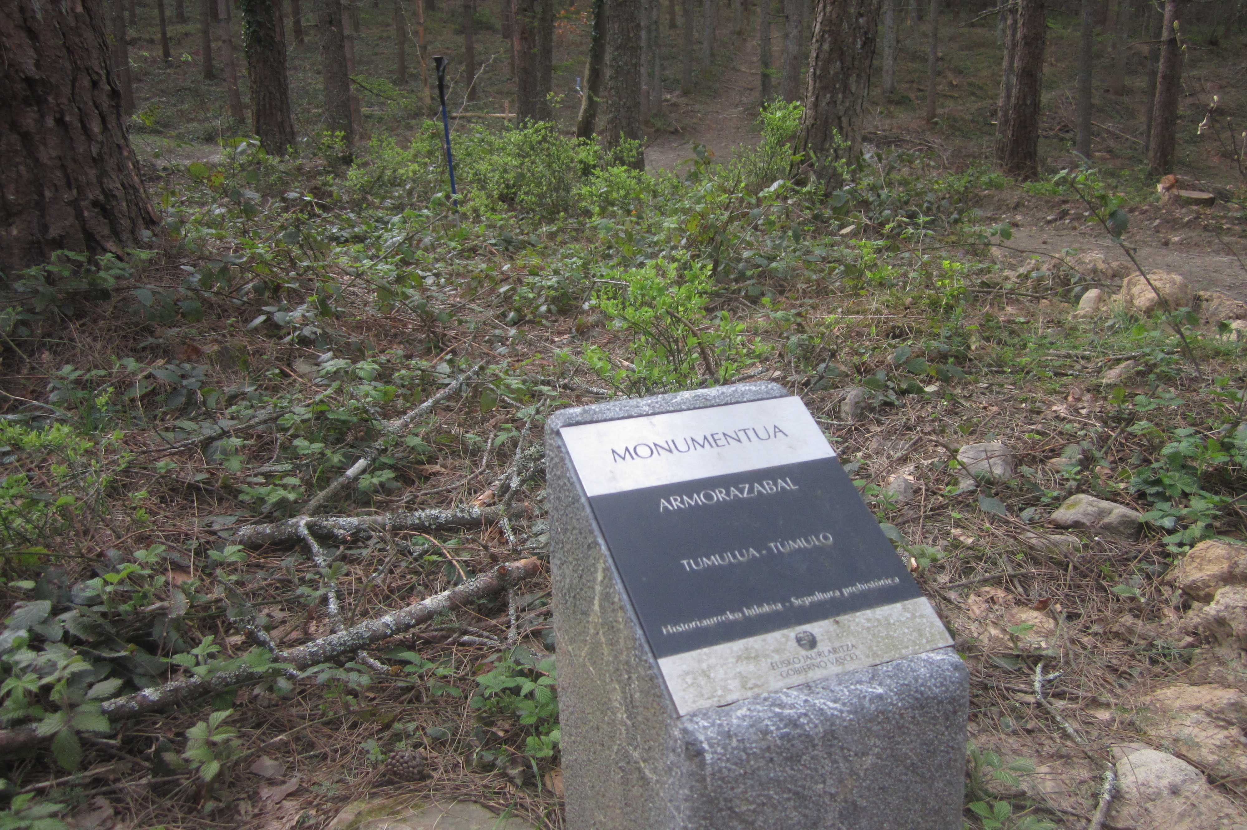 Túmulo arrasado.Se distingue gracias al hito de Eusko Jaurlaritza.