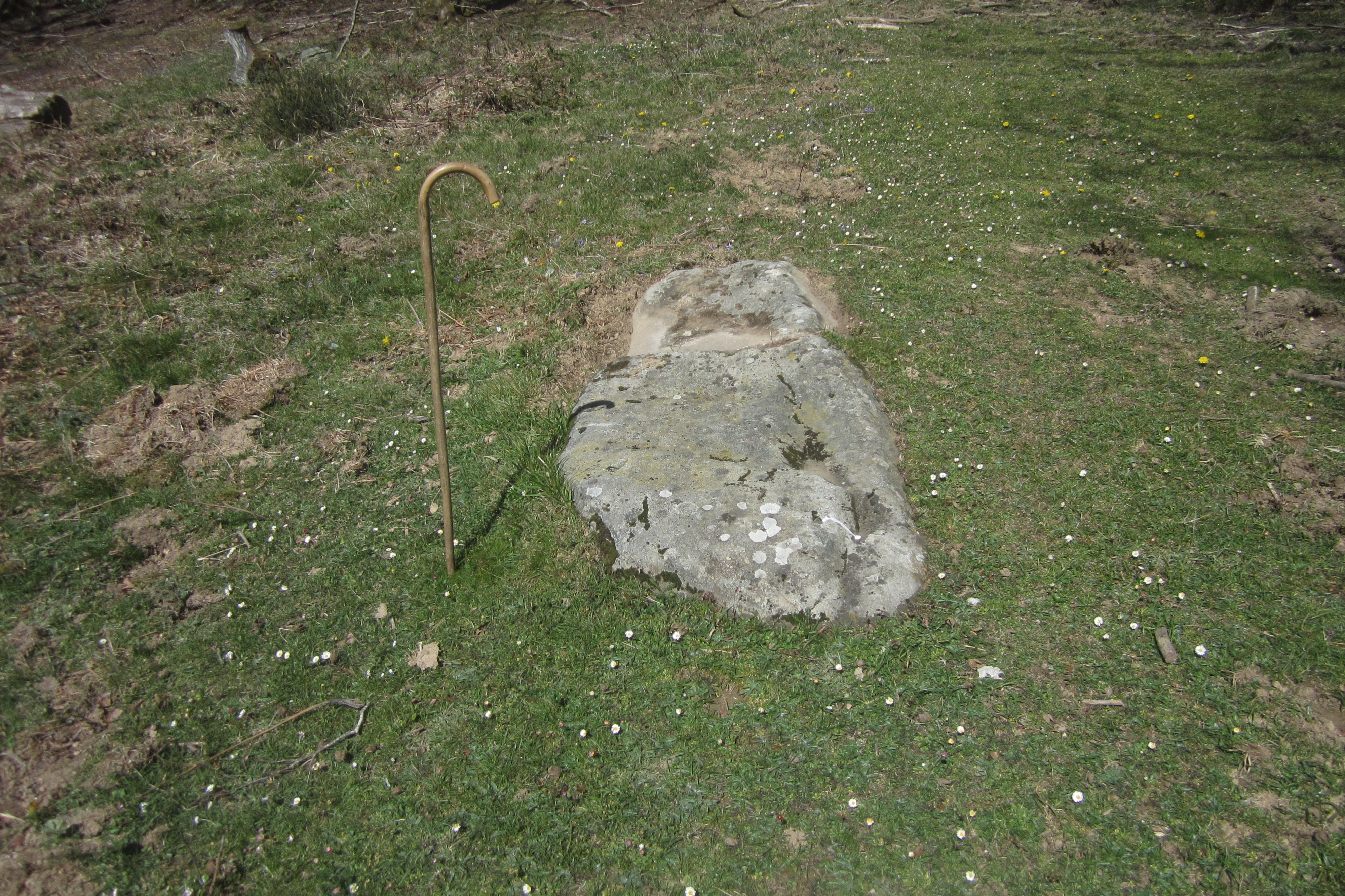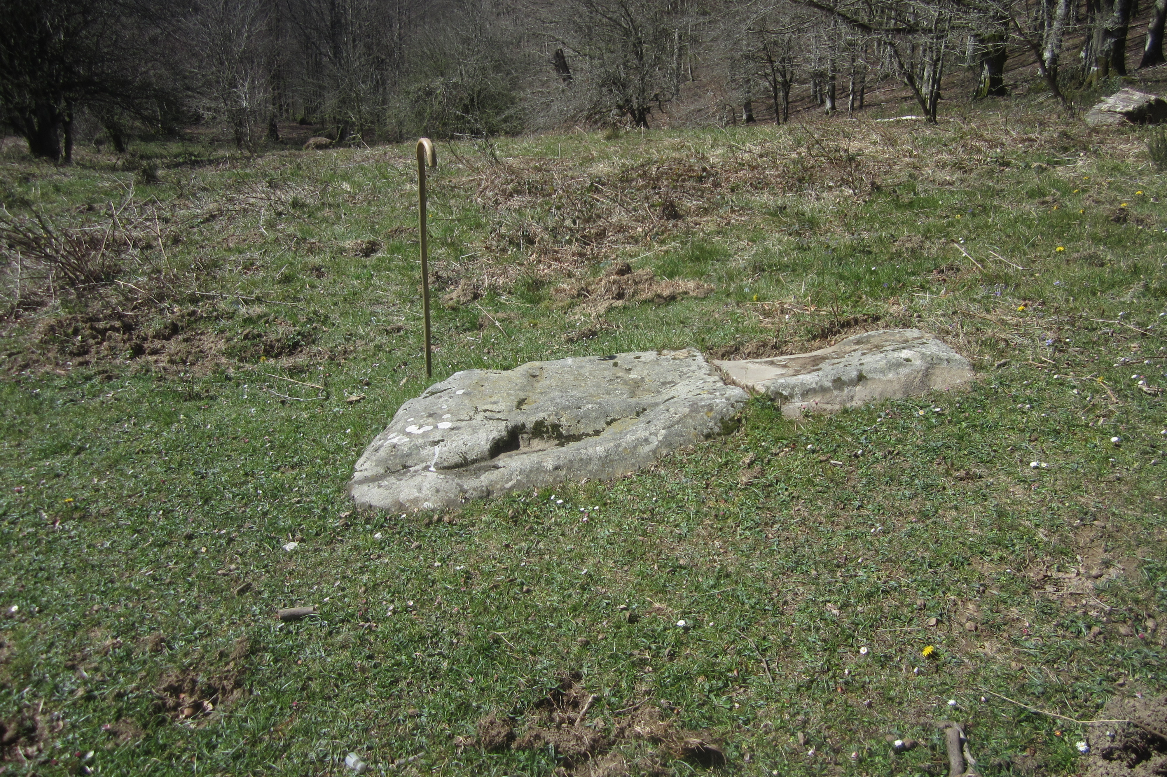 Monolito tumbado de 2 metros de largo.y partido en dos trozos.