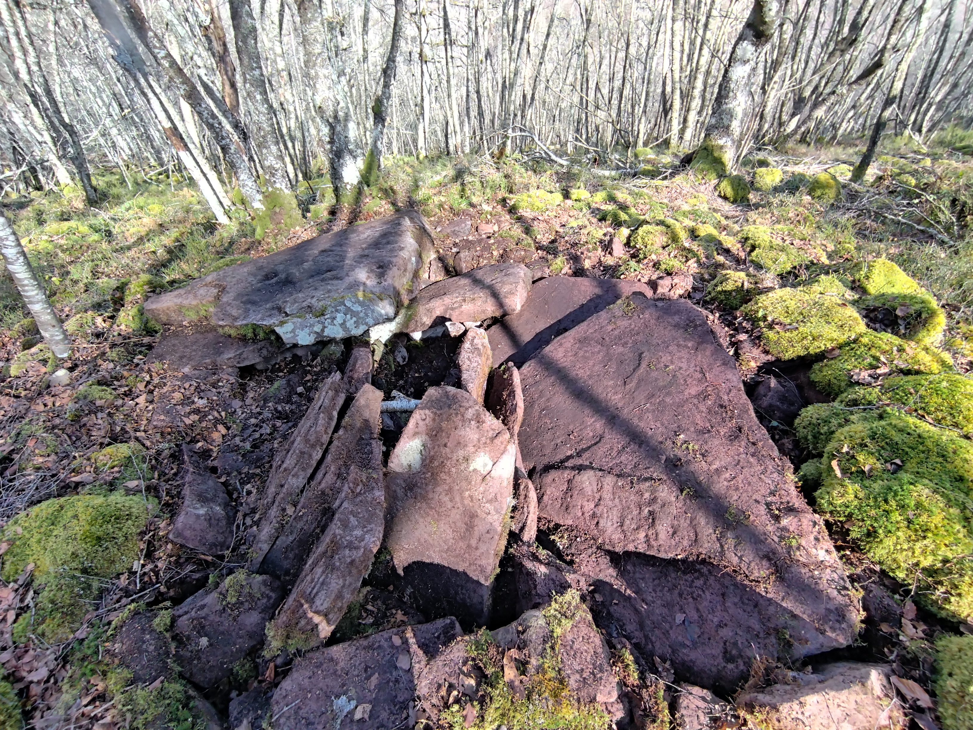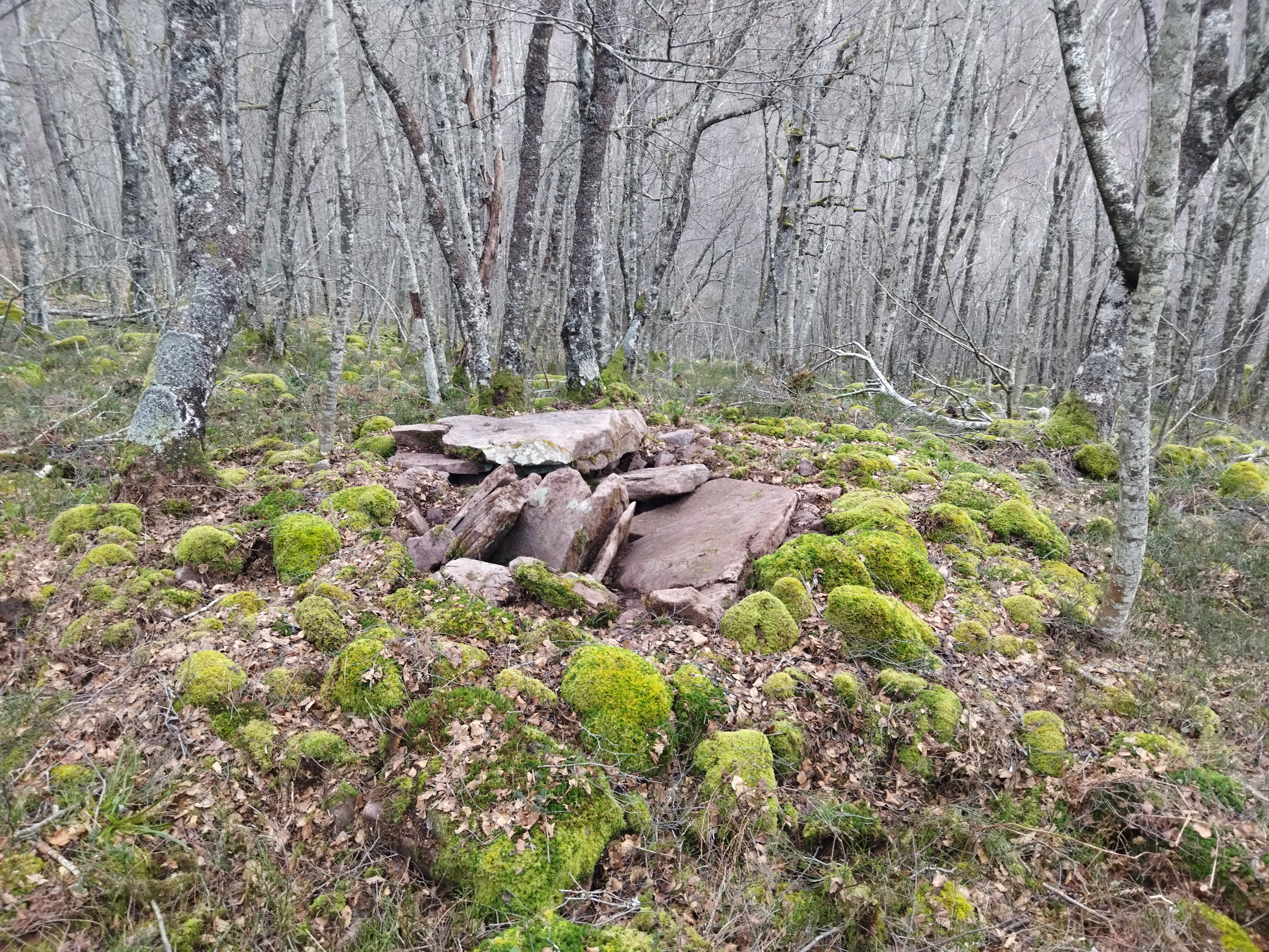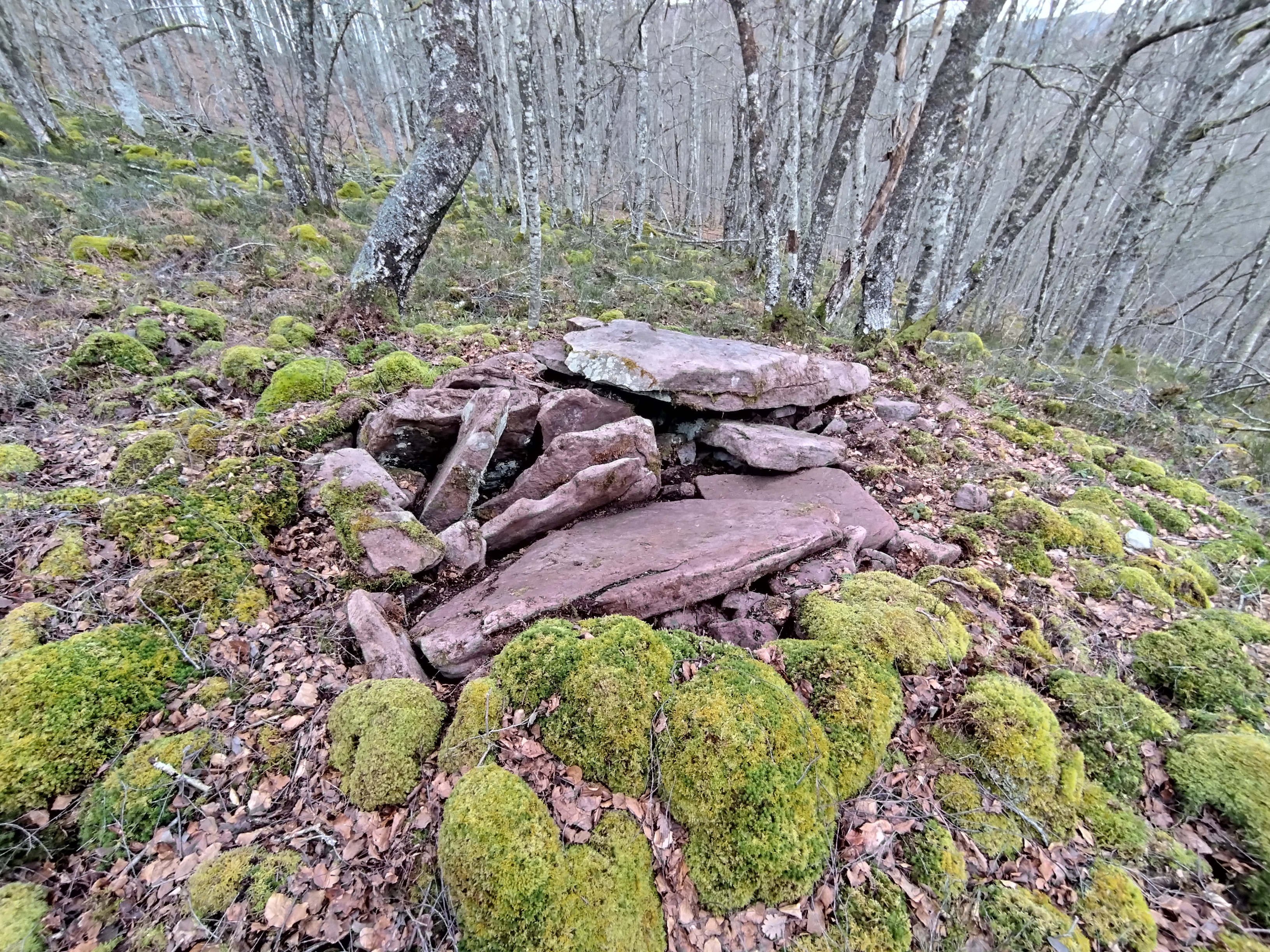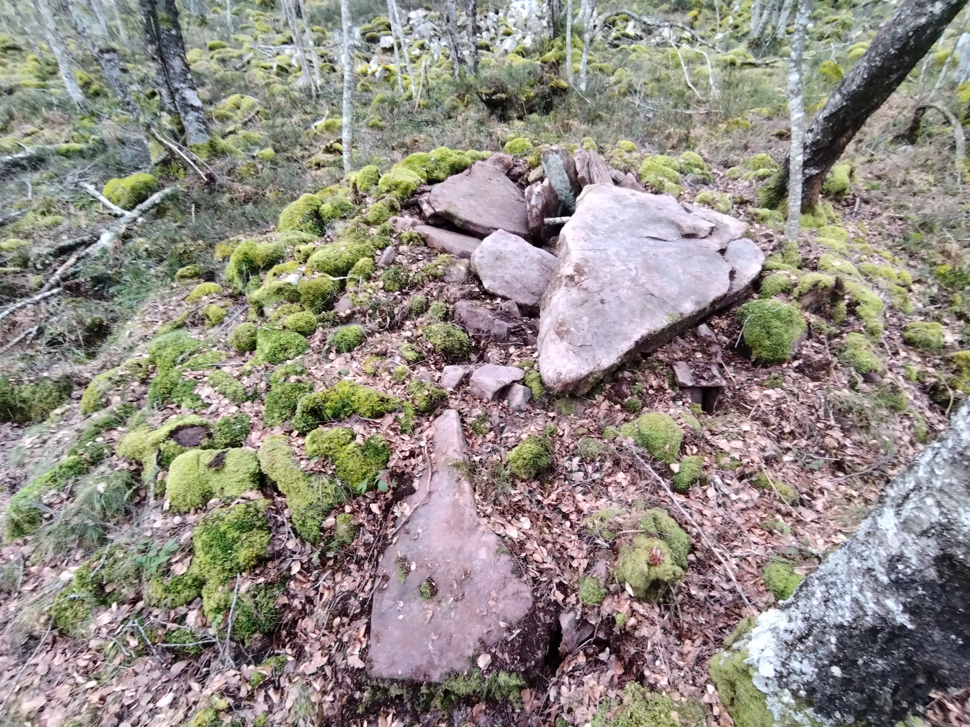 Erdialdean ganbara mantentzen da 3 harlauza osaturik, haietako bi zatikaturik. Beste hiru harlauza etzanda ageri dira eta ganbararen alboan estalki haundia kokatzen da.Tumuluaren gainean berte harlauzaren bat agertzen da.