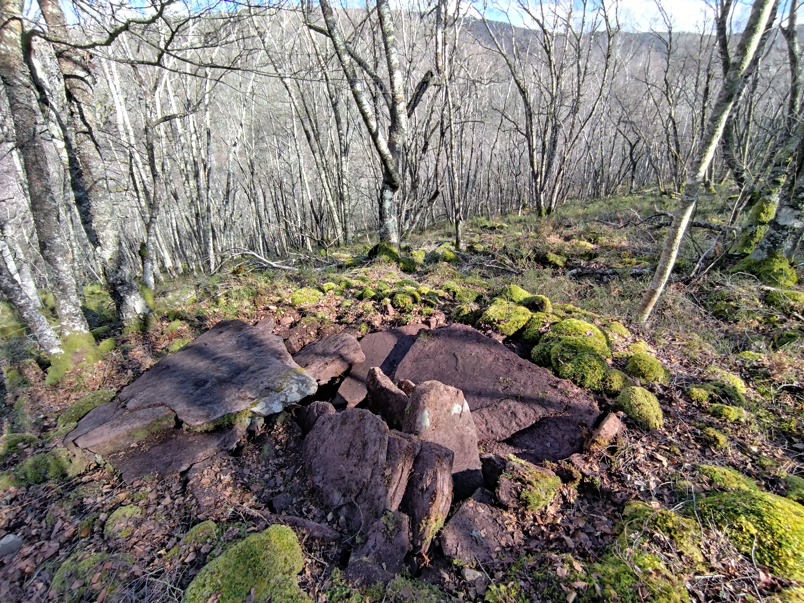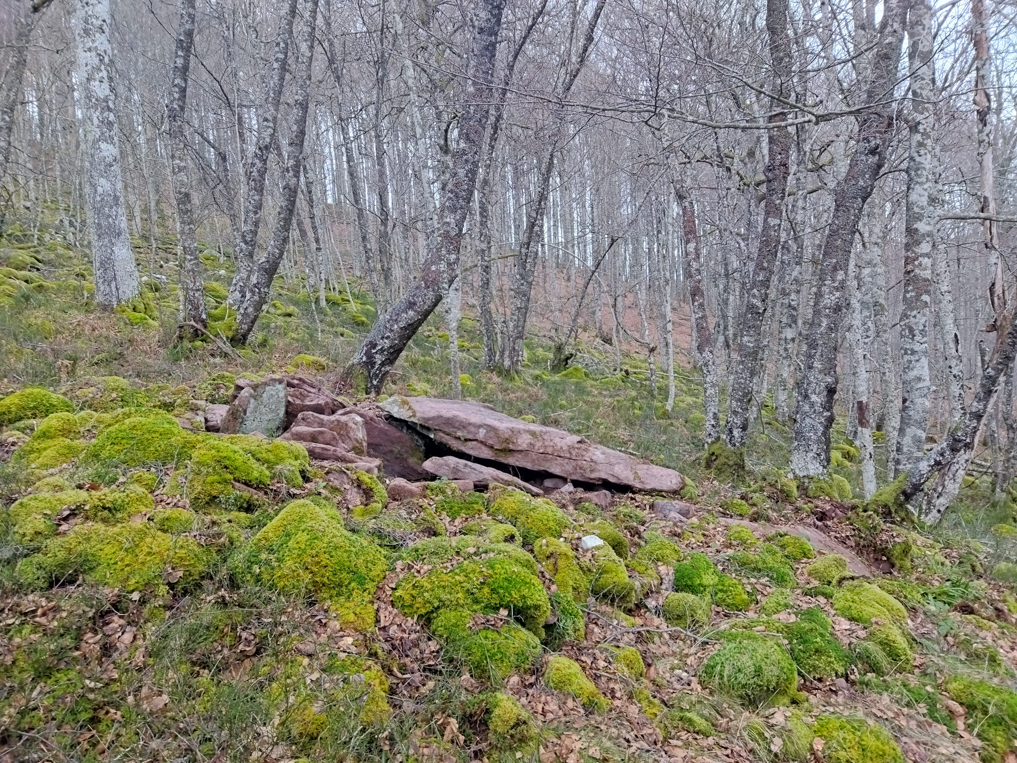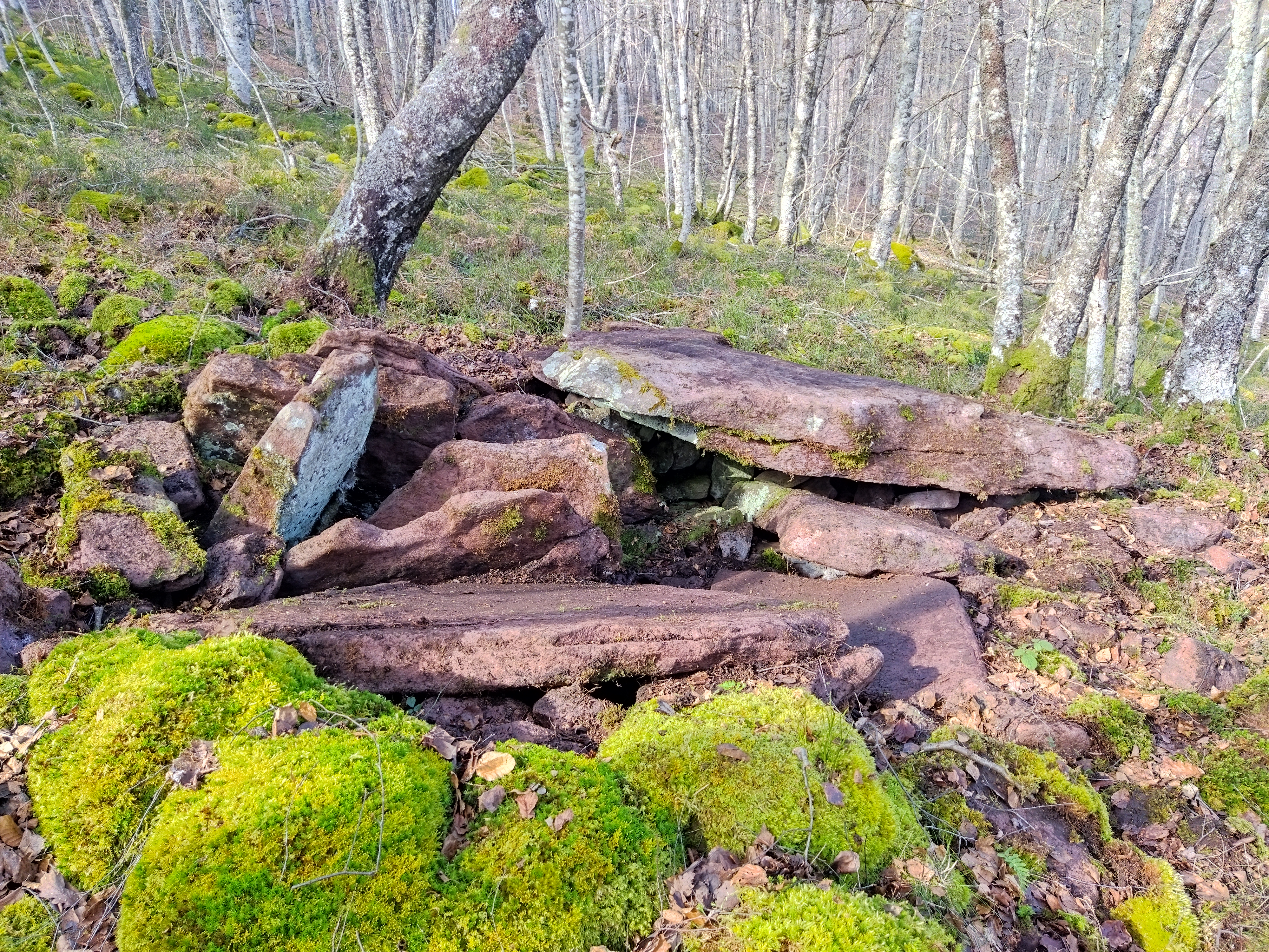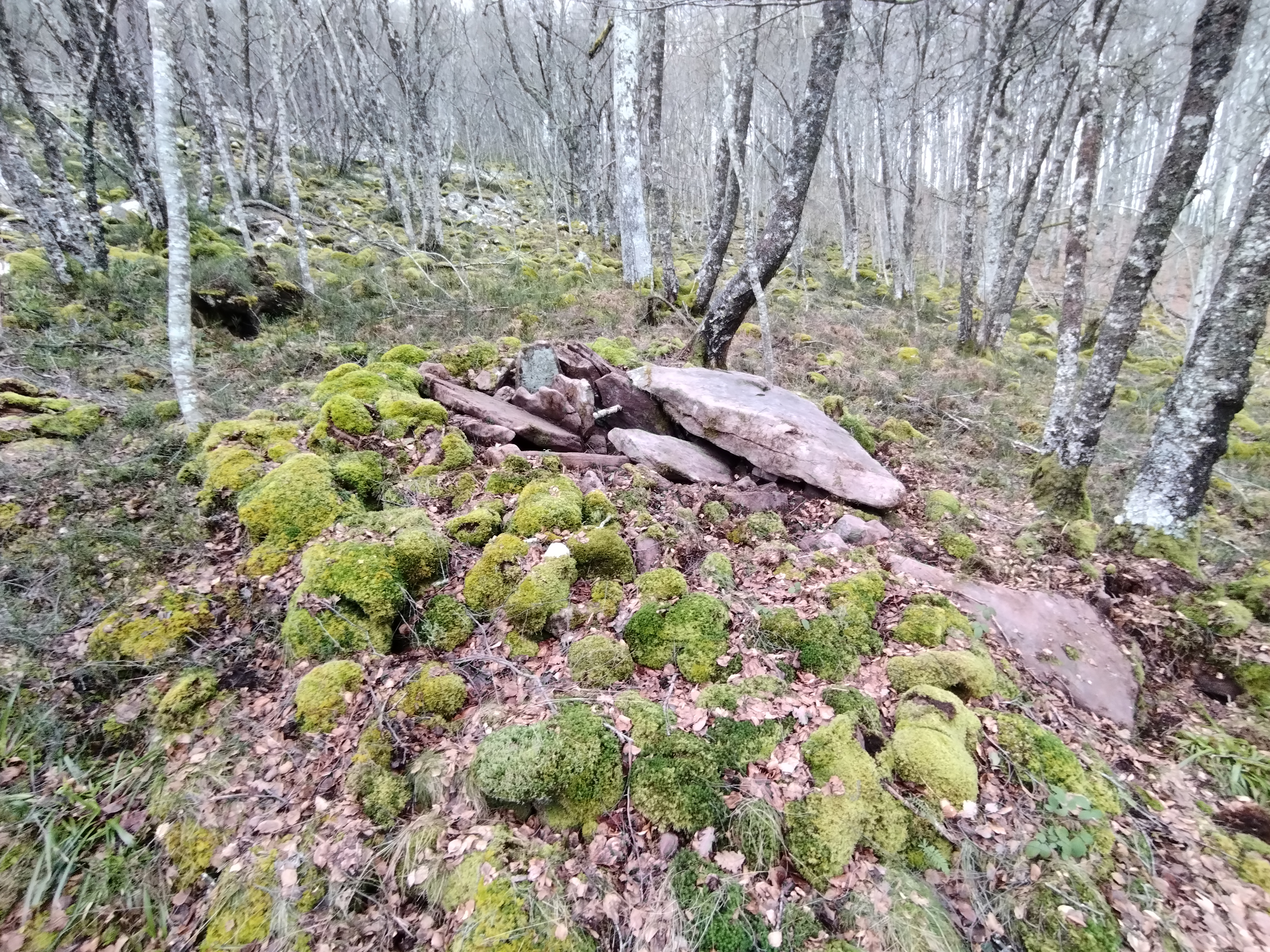 Erdialdean ganbara mantentzen da 3 harlauza osaturik, haietako bi zatikaturik. Beste hiru harlauza etzanda ageri dira eta ganbararen alboan estalki haundia kokatzen da.Tumuluaren gainean berte harlauzaren bat agertzen da.