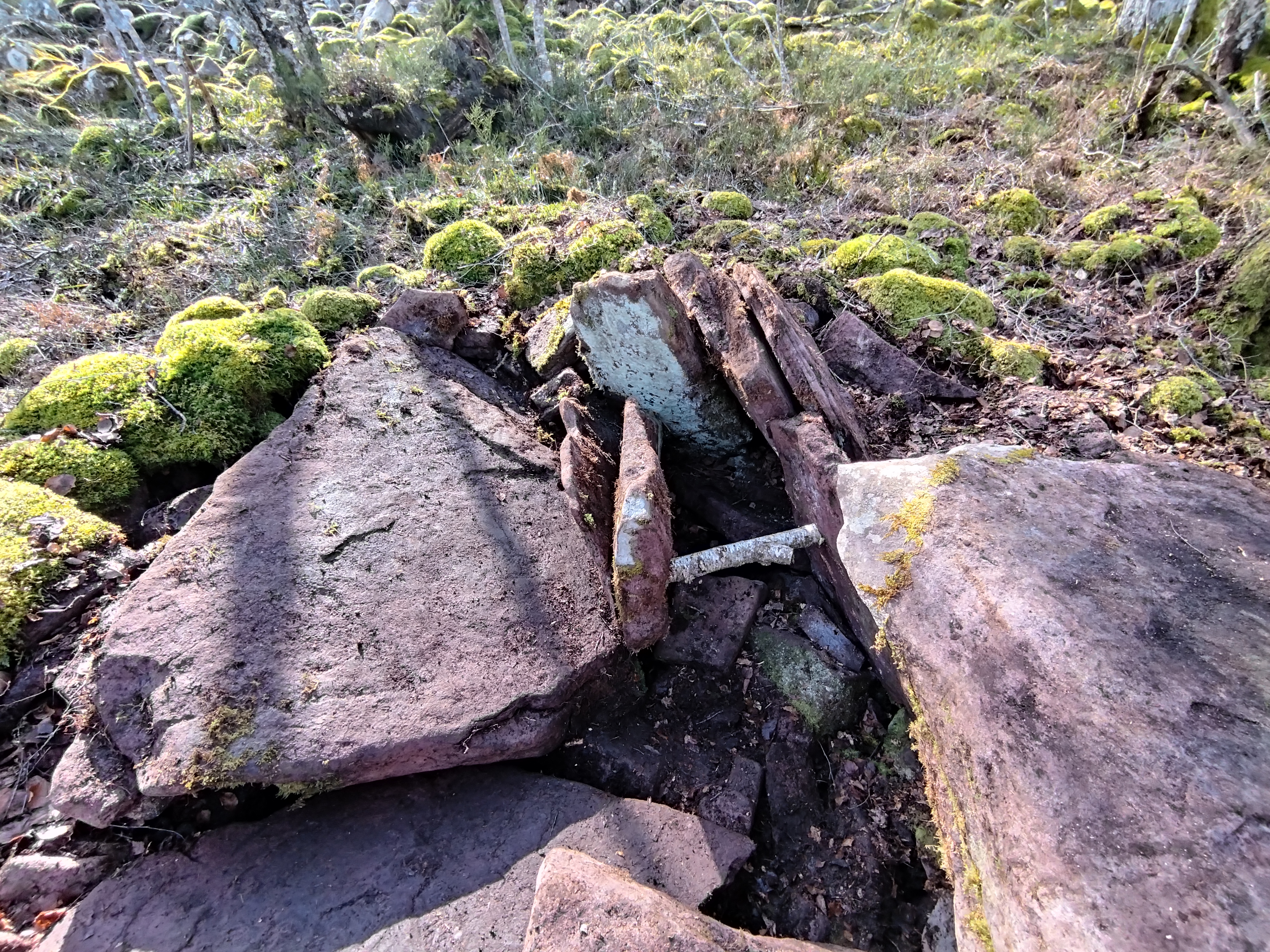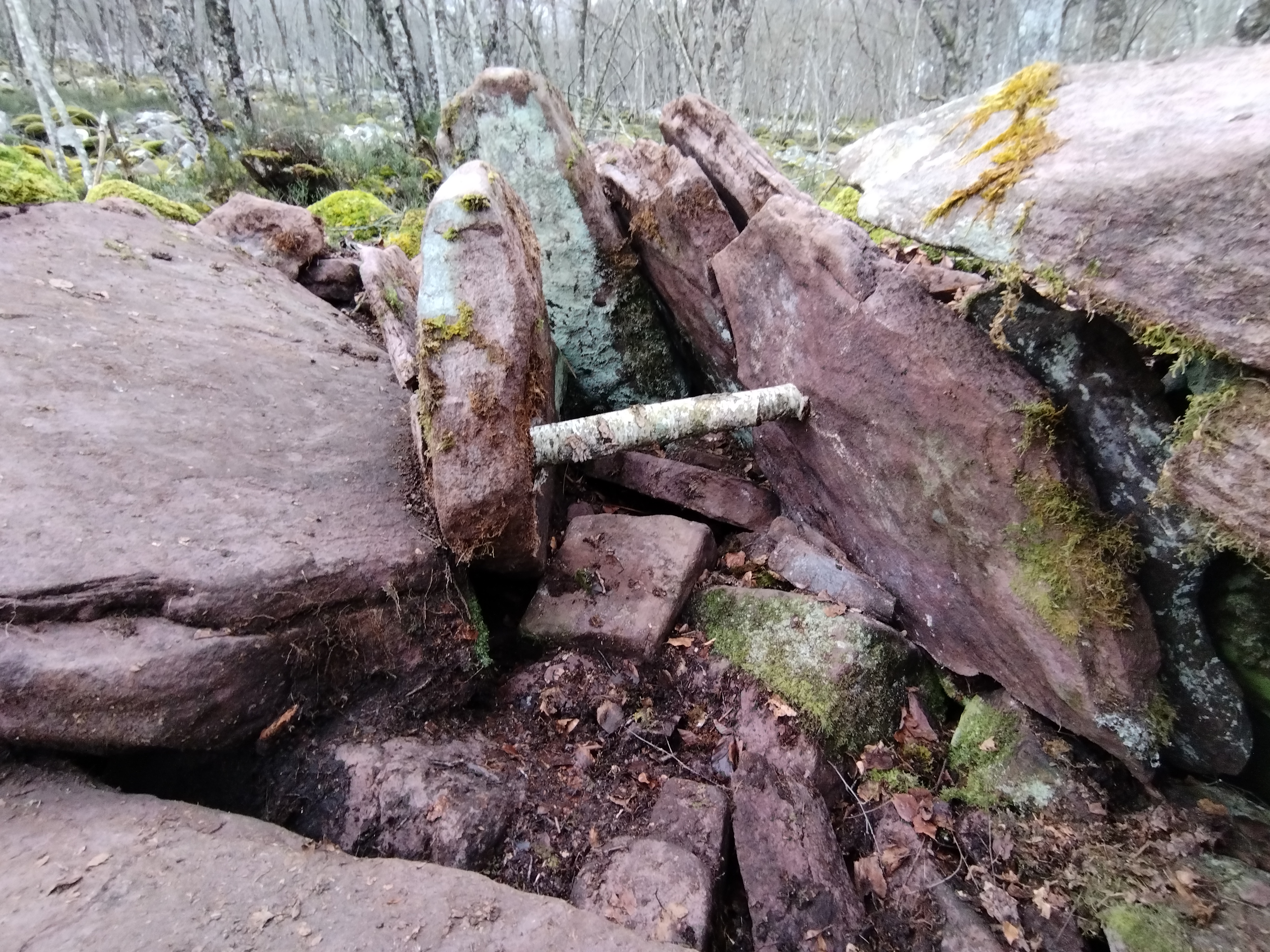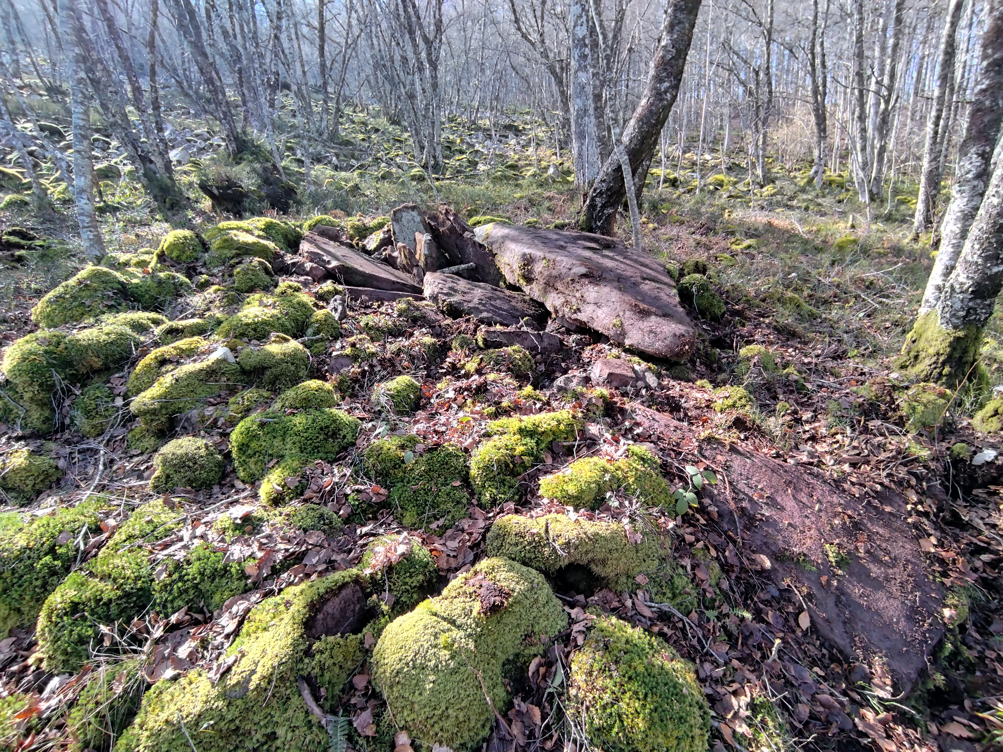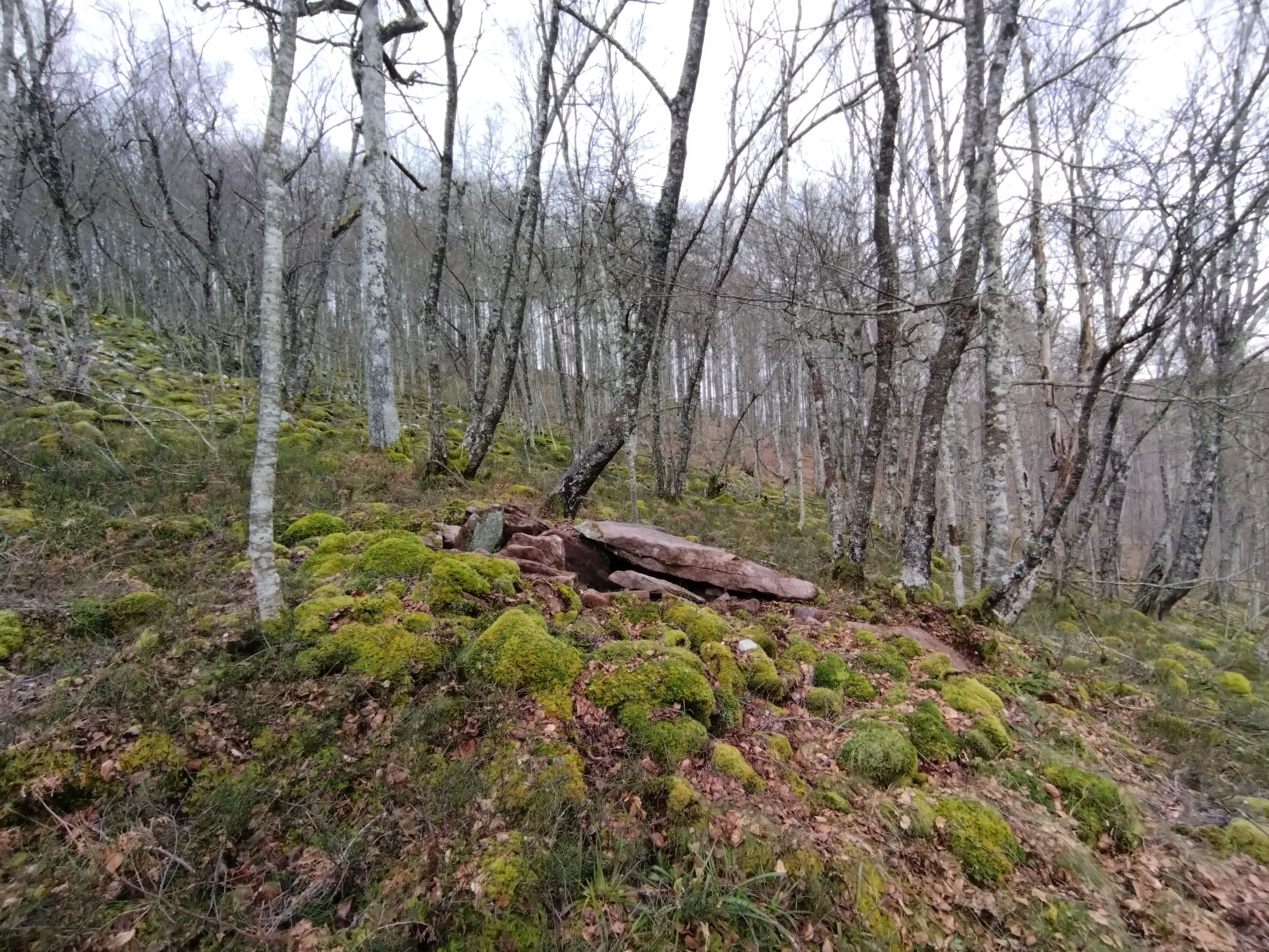 Erdialdean ganbara mantentzen da 3 harlauza osaturik, haietako bi zatikaturik. Beste hiru harlauza etzanda ageri dira eta ganbararen alboan estalki haundia kokatzen da.Tumuluaren gainean berte harlauzaren bat agertzen da.