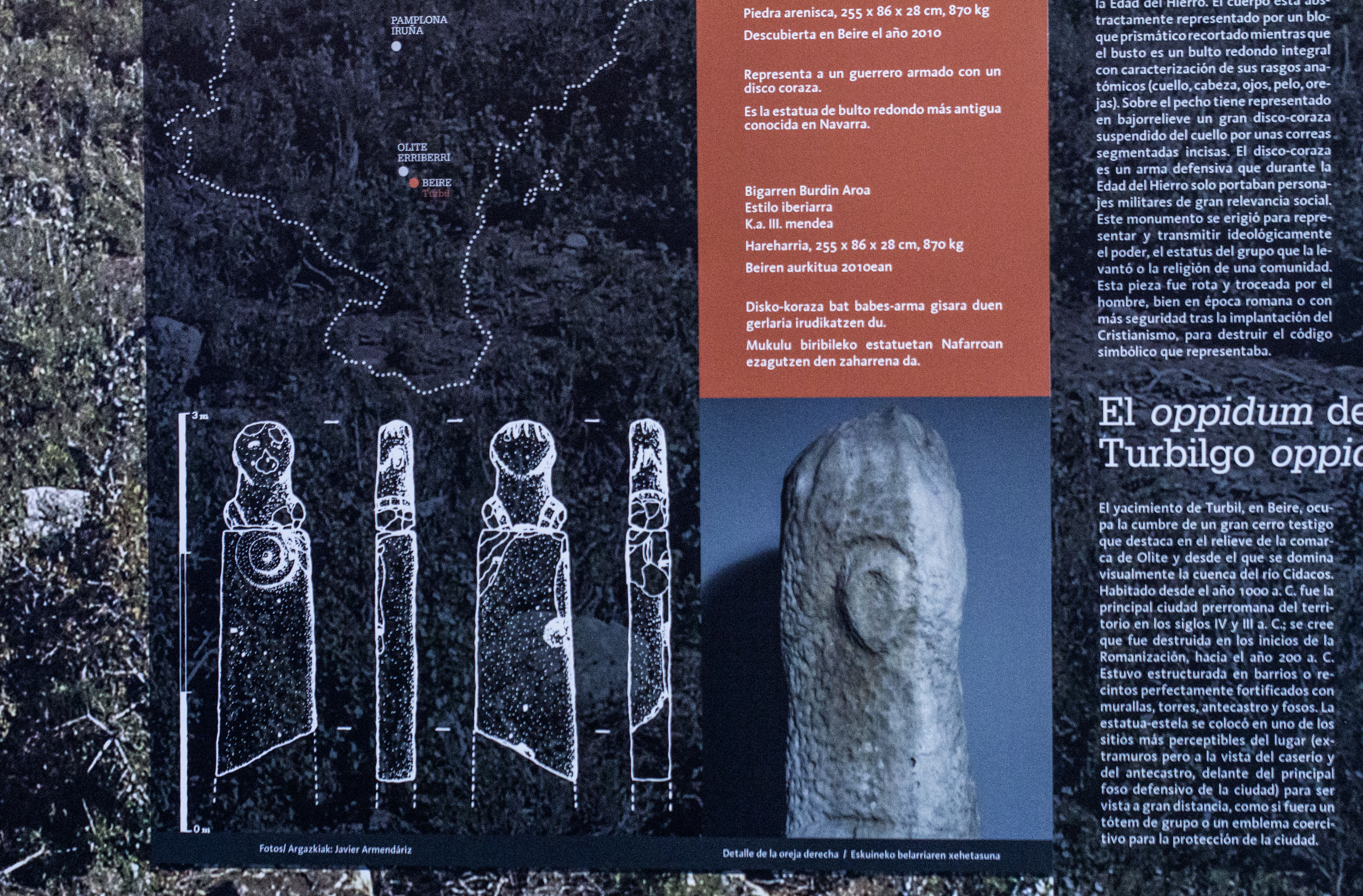 Nola iritsi: Actualmente se haya en el Museo de Navarra en Iruña. Hay una réplica en Beire en donde se descubrió en 2010.