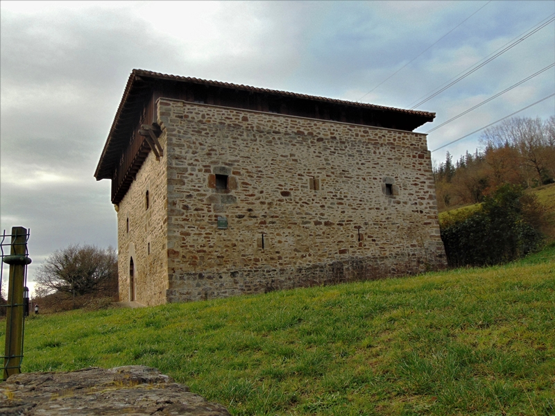 Garai hartan ohikoa zenez, defentsarako behar zituen ezaugarriak jarri zizkioten. Etxe altua da (hiru solairutakoa), lauki formako oinplanoa dauka eta lau isuritako teilatua. Hormetan leiho edo zulo txikiak ditu.
