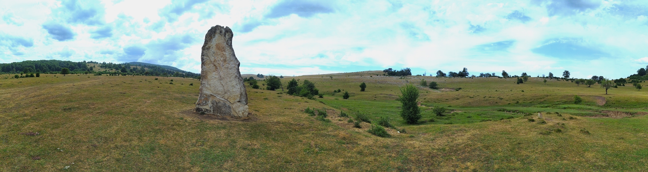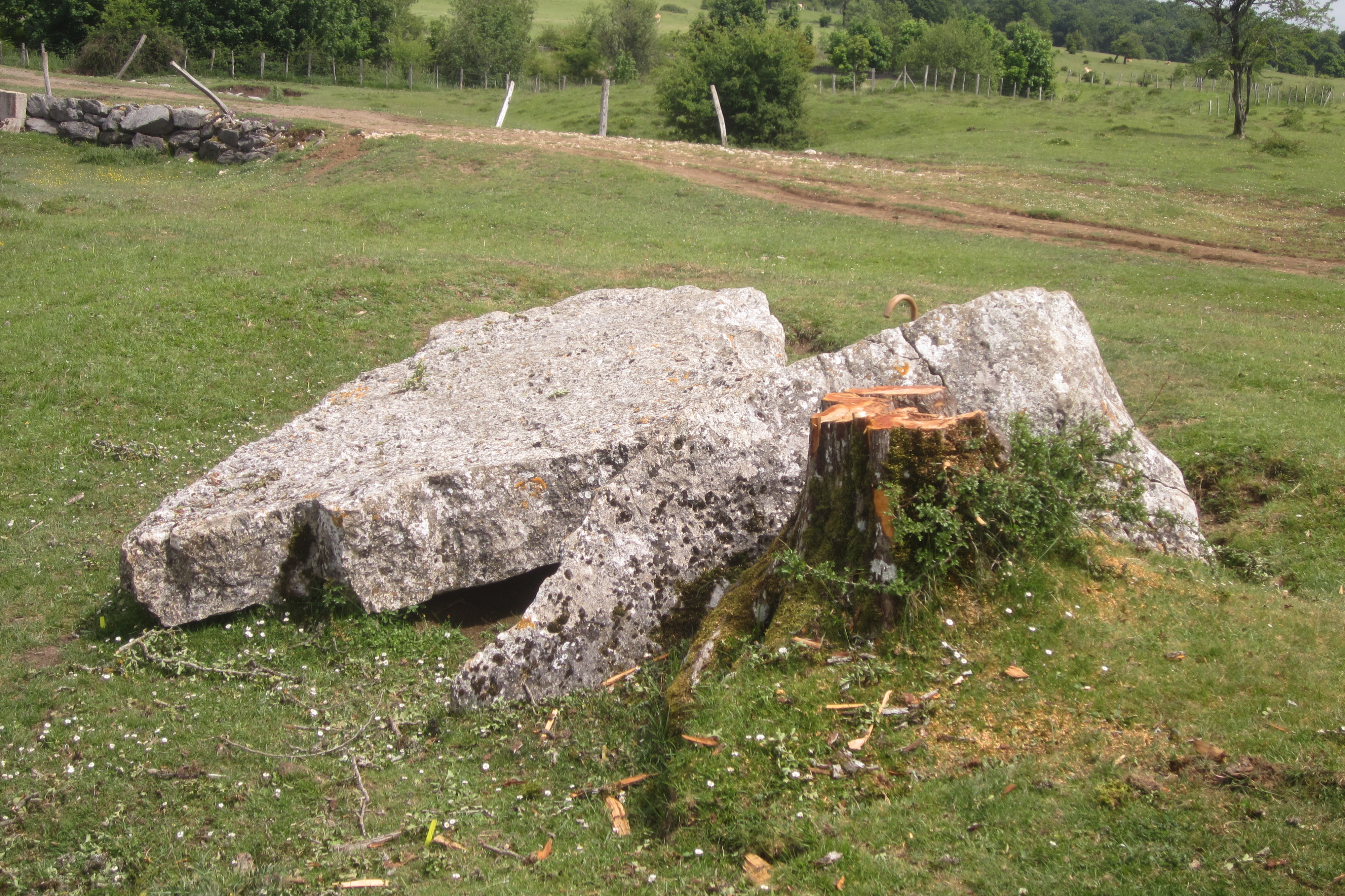 Zati handia lurrean etzanda dago eta 3,40 metroko luzera, 2 metroko zabalera eta 0,30 metroko lodiera du, zeina lurrean iltzaturiko zatiari gehituz, 4,40 metro baino gehiagoko garaiera ematen duen. Sekzio laukiluzea.