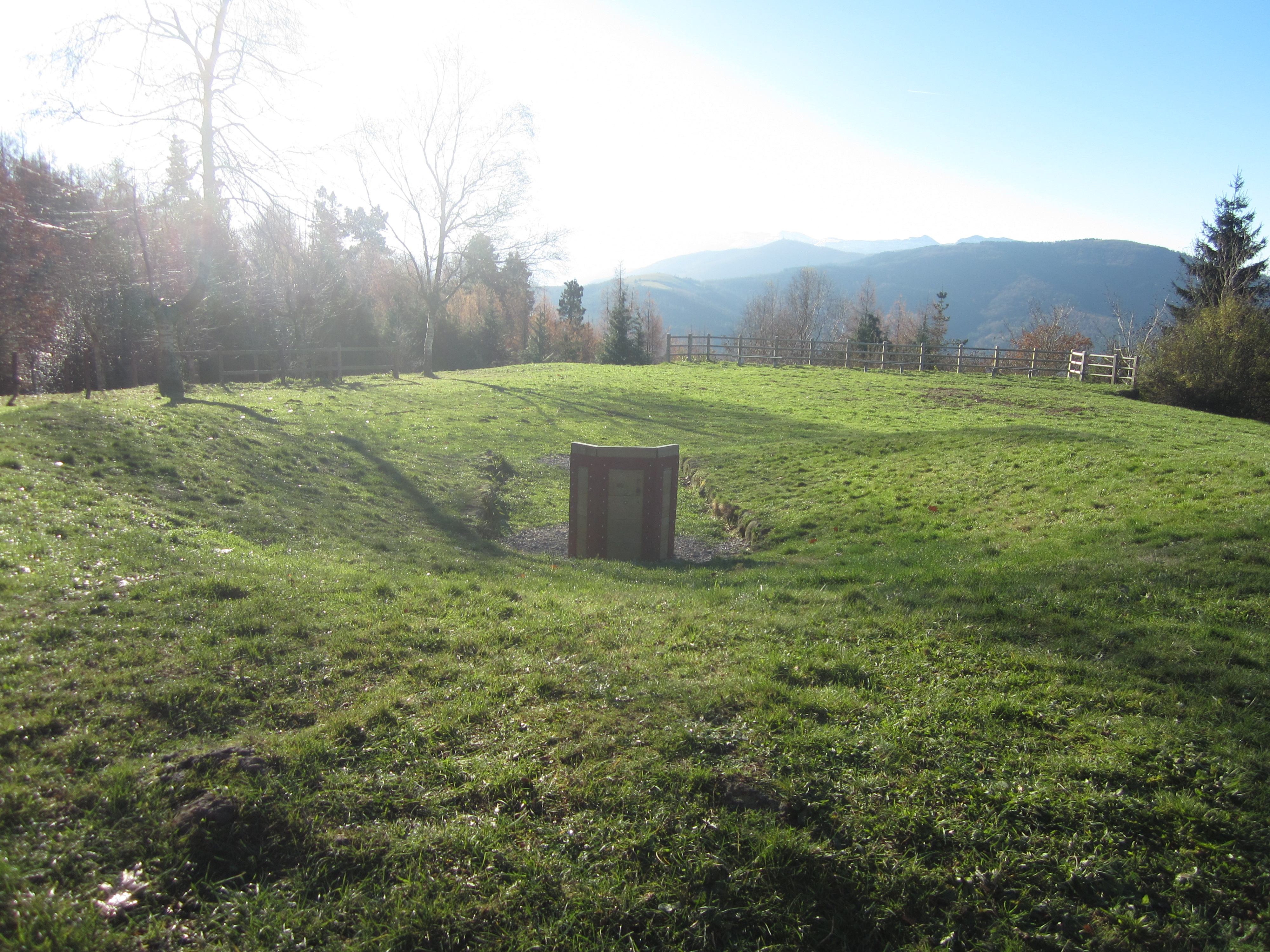 Tumulua 19,50 m. diametrokoa eta 1,75 m. altuerakoa. Erdian, krater erako zanga bat du, 15,50 m.tako luzerakoa, 10 m. zabalera eta 1,75 m.tako sakonera, iparraldeko arkuaren erditik tumuluaren hegoaldeko muturreraino iristen dena. Bertako basaltoak.