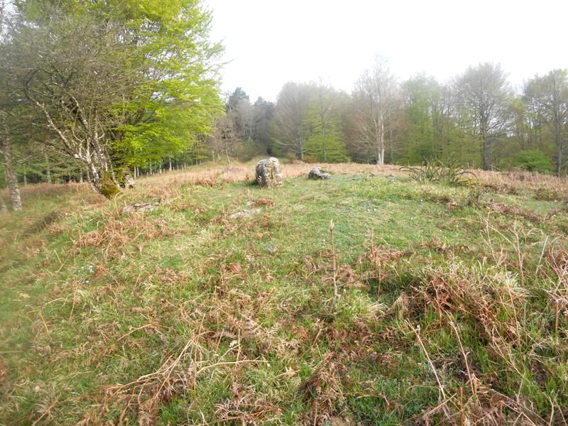 Trikuharria. Tumulu obalatua 9,50 m. diametrokoa I-H eta 12 m. E-M eta 0,70 m.tako altuera erdian. Industzaileek ziotenez, 1960ean: Ganbara, asko okertutako bi harlosaz eta tumuluan etzandako beste biz osatua dago. Norabidea EHE-MIM.