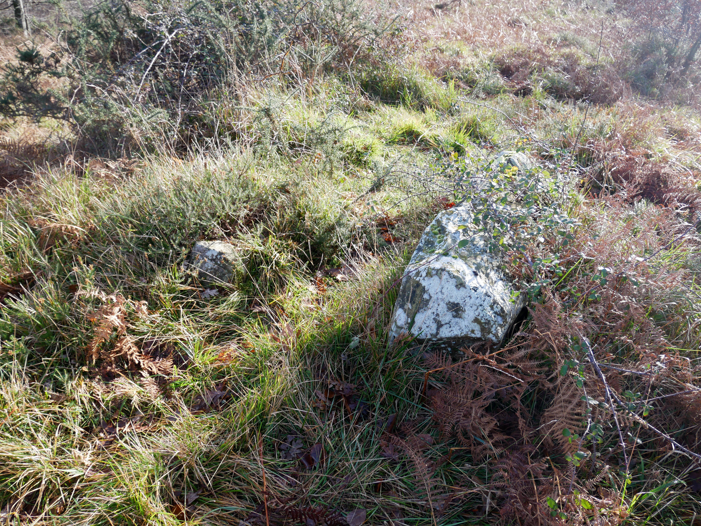 Gaur egun 2 m. zabalerako zanga formako zulogune bat du erdialdean EHErantz dena. Bertan, HMan, barne-kaldera okertutako harlosa bat dago (1,60x0,90x0,40 m.), eta beste bat IErantz, ia lurretik irikitzen ez dena (0,88x 0,24 m). Tumulu gainean beste harlosa batzuen zatiak daude. Bertako hareharriak.