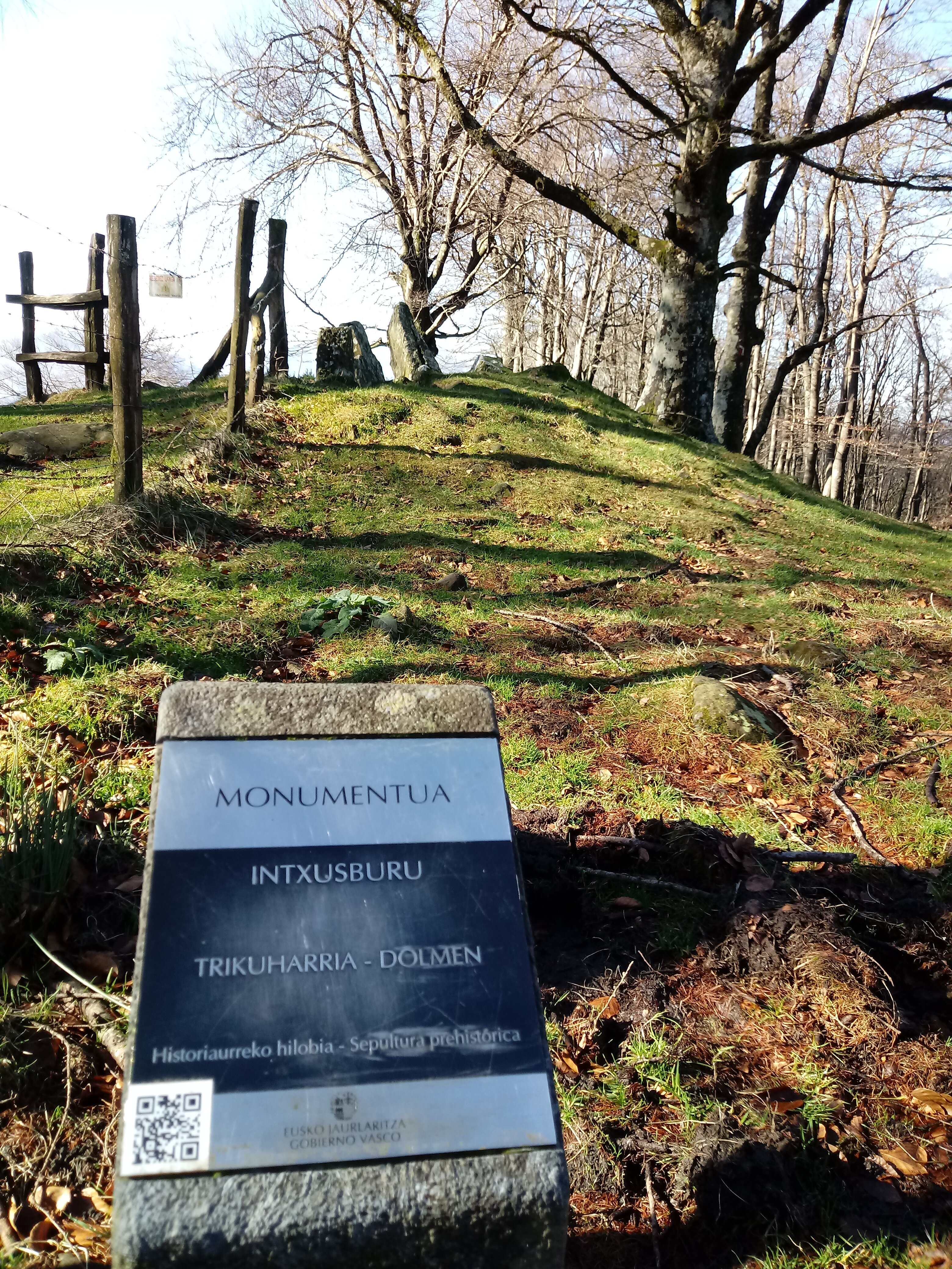 Trikuharri luzea? Igargu-hilobia?. Tumulu oso jeitsia eta itxuragabetua, 10,50 m. diametrokoa eta 1 m. altuerakoa. Erdiko kraterra 3,60 m. diametrokoa eta 0,40 m. sakonerakoa da. 1919an oraindik 6 harlosa kontserbatzen ziren, batez ere Iparraldeko alboan, oinaldea harkoskoz kaltzatua zutelarik. Hauei esker esparru errektangular luzeka bat susmatzen da, E-M norabidekoa. Gaur egun, soilik zutik dauden hiru, iparraldeko kuadrantean, E-M lerrokatuak, beste harkosko eta harlauza batzuen artean, kontserbatzen dira. Bertako hareharriak.