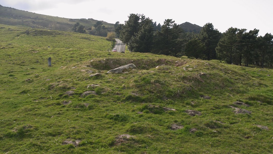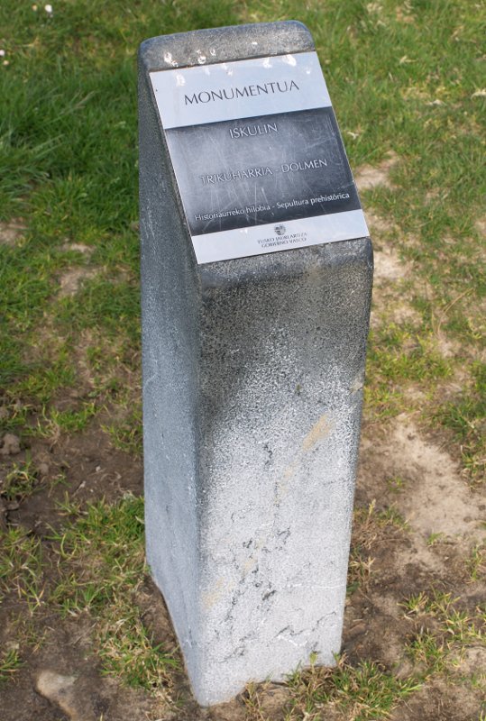 J. M. BARANDIARANek zionez: Trikuharria. Tumulua 16 m. diametrokoa. Ganbara 3 harlosakoa. Argitaratutako oin-planoak dionez, alboko harlosa bat falta diezaioke, trikuharri labur itxi bat dirudi. Ardatz nagusiaren norabidea IE-HMkoa da.