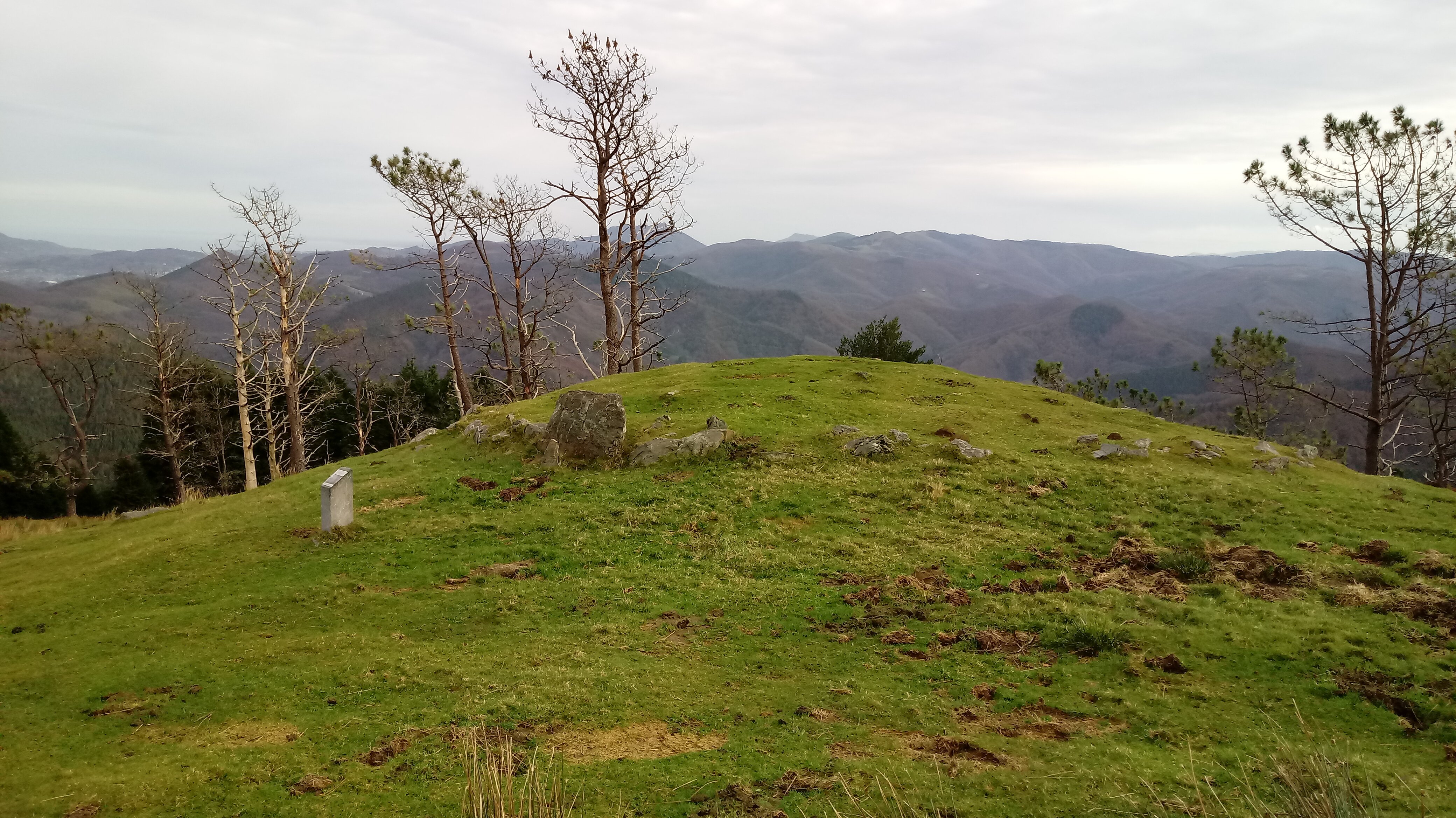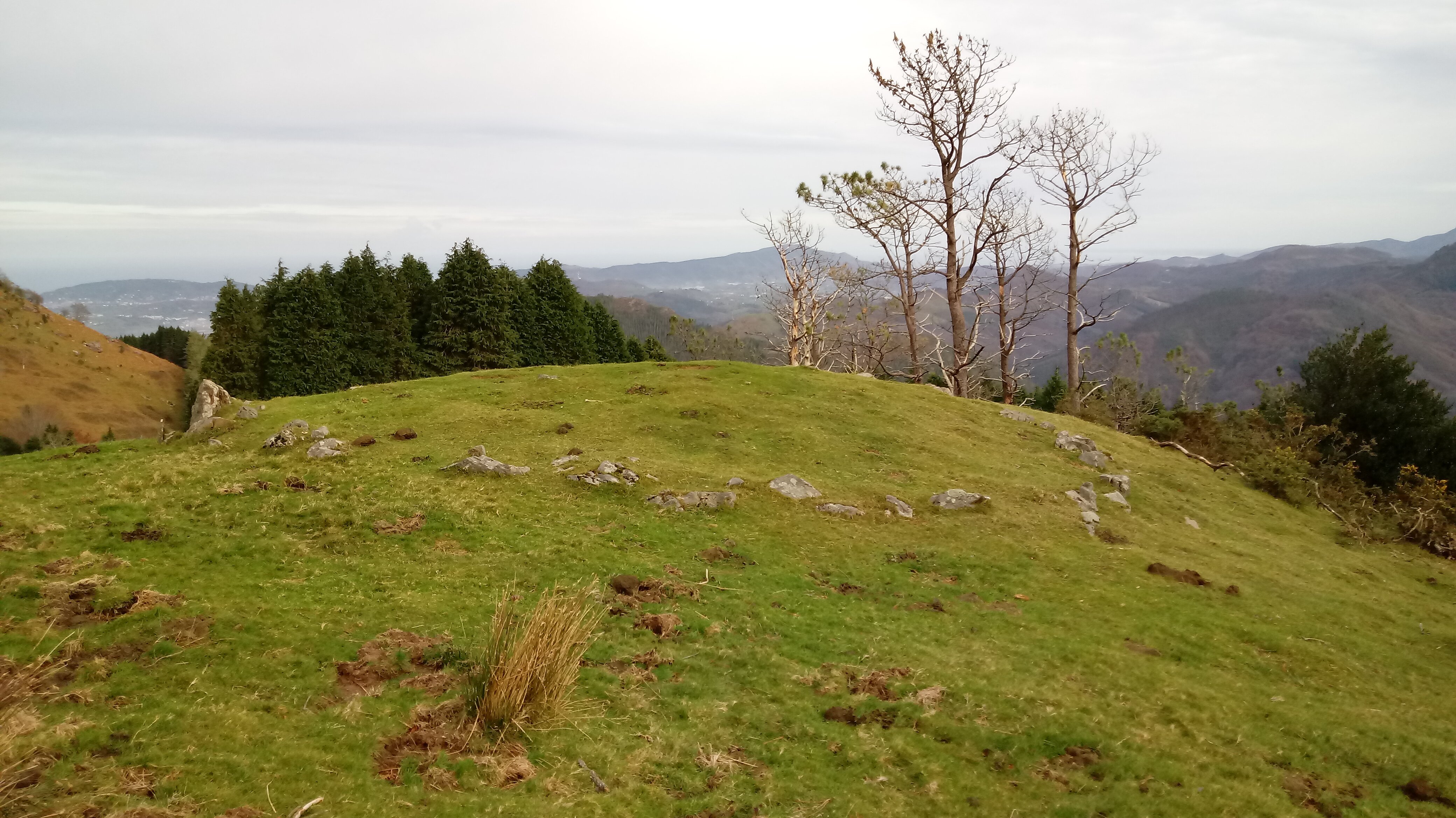Harrespil tumularra, 11 m. diametrokoa eta 0,50 m. altuerakoa. Agerian dauden 57 lekukok osatzen dute, 0,75 m. altuerako bat azpimarragarria delarik. Bertako kuartzitak, arbelak eta hareharriak.