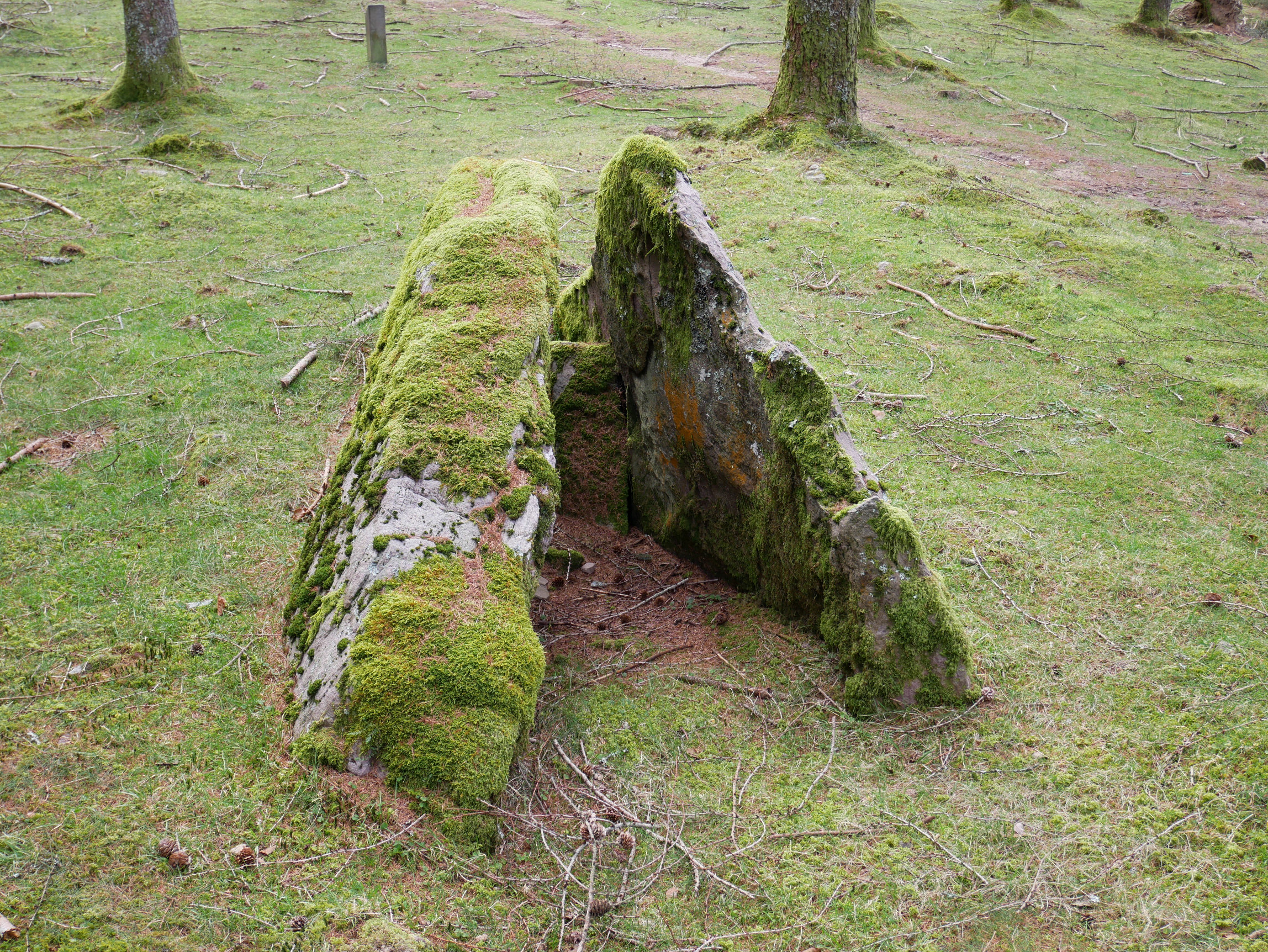 Trikuharri labur irekia. Tumulu zirkularra 10 m. diametrokoa eta 0,50 m.tako altuerakoa. Ganbara, esparru errektangular bat, 3 harlosaz osatua dago, alboko 2ak barnekaldera piska bat okertuak daudelarik. Iparralderanzko norabidea. Bertako hareharriak.